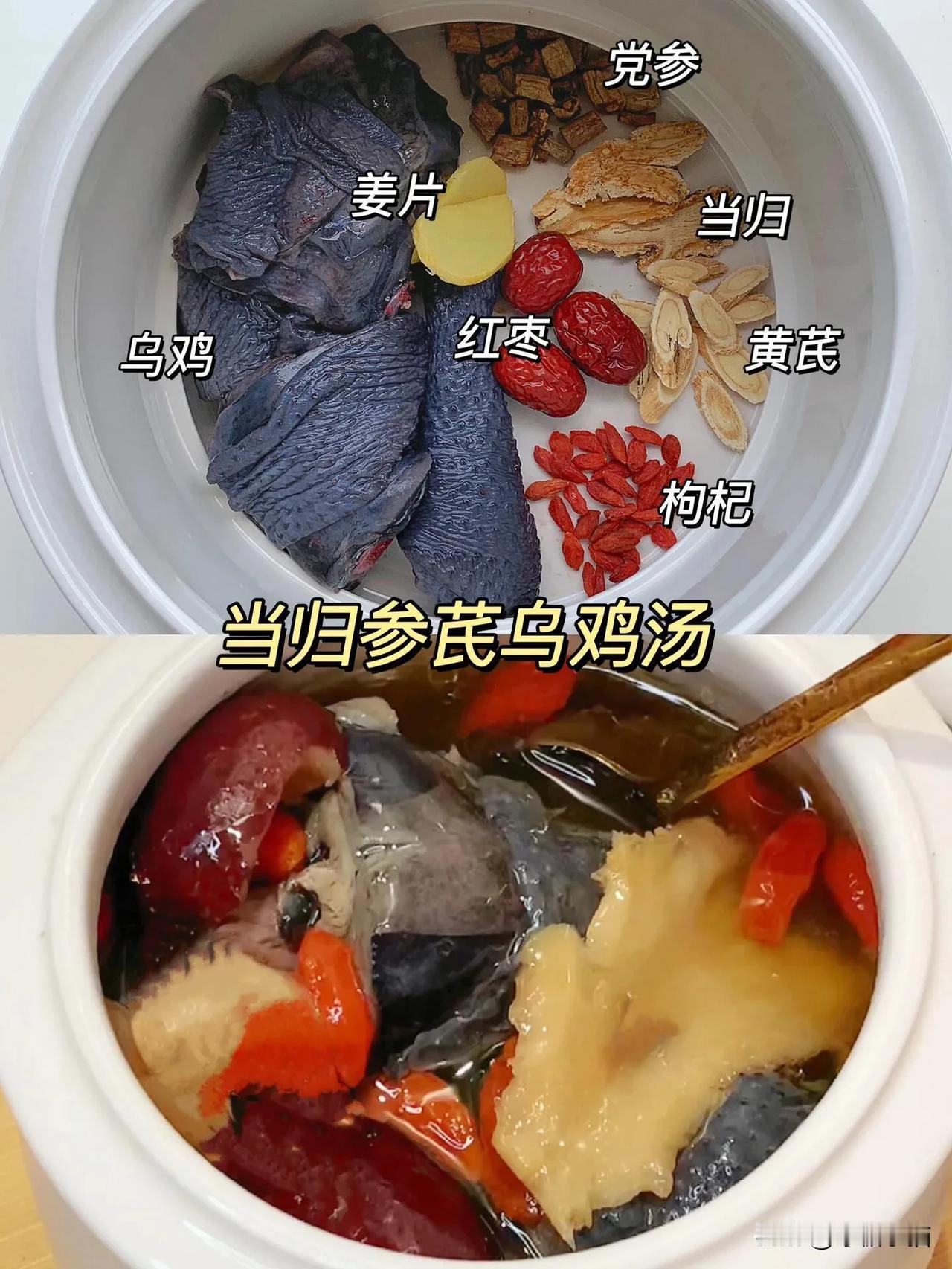 女生一定要学会的美味乌鸡汤❗️补气🩸又好喝 妈妈总对我说,补气血怎能少得了一碗乌鸡汤呢?!像平时熬夜多,脸蛋暗黄,手脚冰冰凉凉呀~ 姨妈不乖的又爱美的姑娘们,有空给自己炖个美味的乌鸡汤喝喝吧~坚持经期后喝上一碗,滋阴养颜又暖胃,皮肤会慢慢红润光泽起来哦~ 分享六个我常喝的乌鸡汤搭配吧~补气🩸真滴牛呀👇🏻 🧑🍳乌鸡汤做法: 1.乌鸡加姜片冷水下锅焯水,捞起洗净备用,红枣记得去核 2.加水隔水炖煮1.5-2小时 3.加盐调味,枸杞后放 ✅ 当归龙眼肉枸杞 养生汤品分享 芬姐精选好汤水 分享滋补汤谱 补气血当归蛋 女神补气血必备 滋补养生汤。 女生气血汤 风姜土鸡暖宫汤