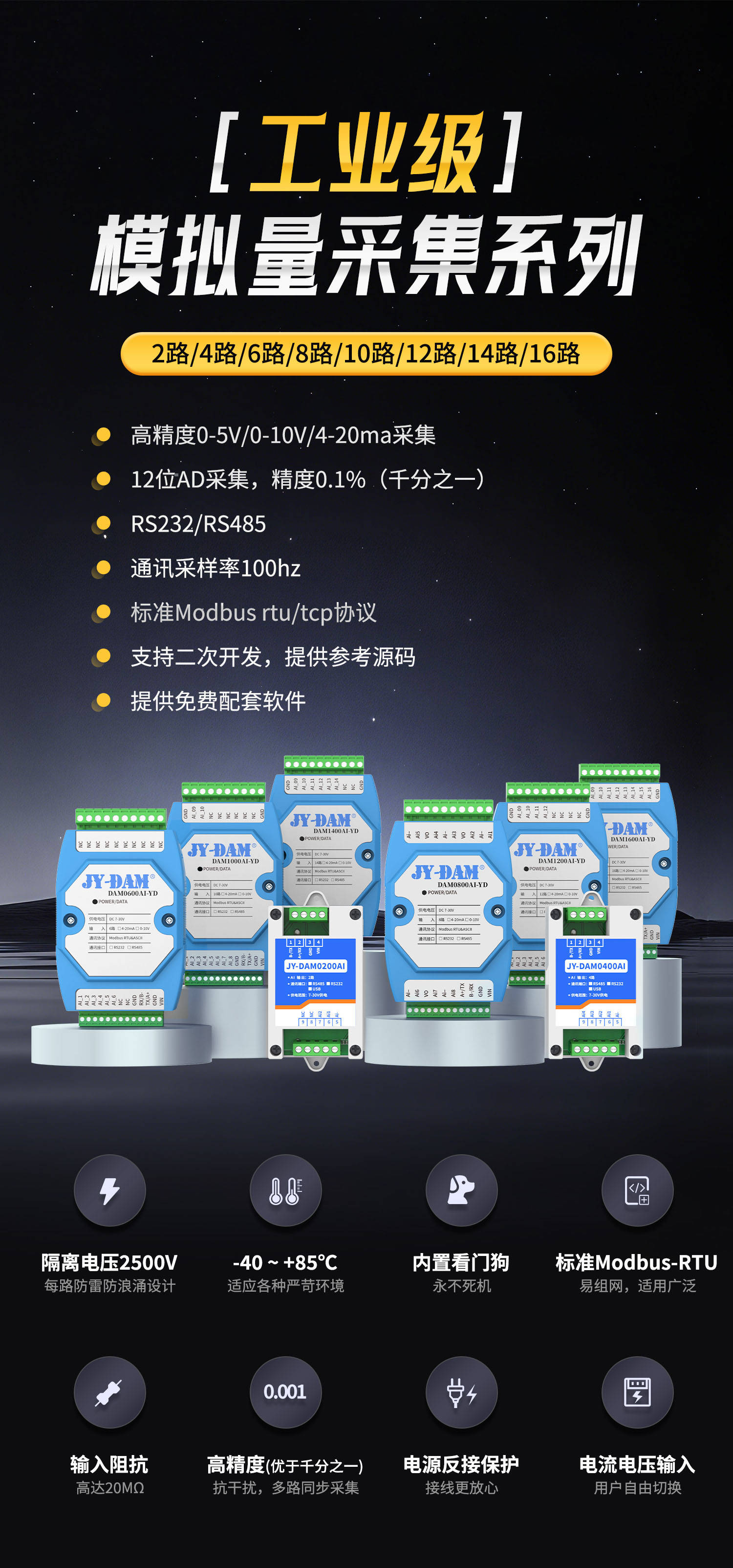 - 高密度水产养殖:选16路以上高分辨率模块,支持多参数同步采集,需具备防水IP67+防护;