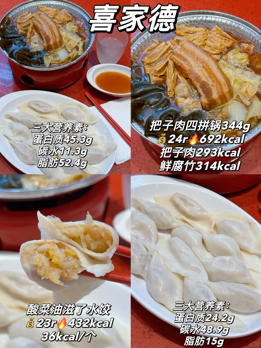 P4 喜家德 酸菜饺子好吃,把子肉配米饭要加290kcal