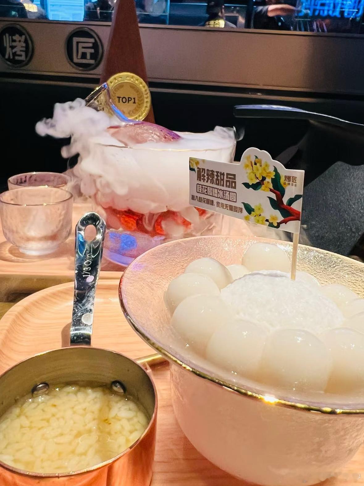 桂花醪糟冰汤圆:冰冰凉凉,微微的甜很清爽。