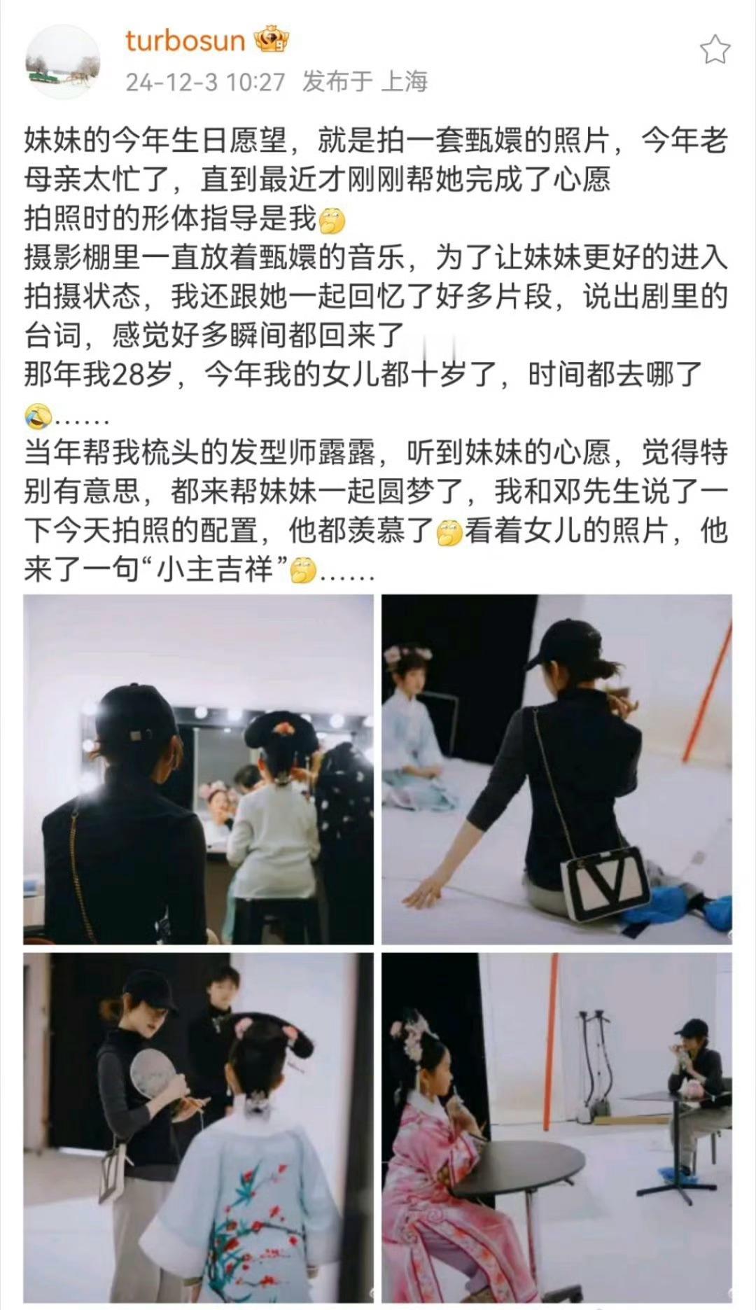 孙俪女儿甄嬛写真 孙俪说女儿小花今年的生日愿望是拍一套甄嬛的照片,晒出指导女儿c