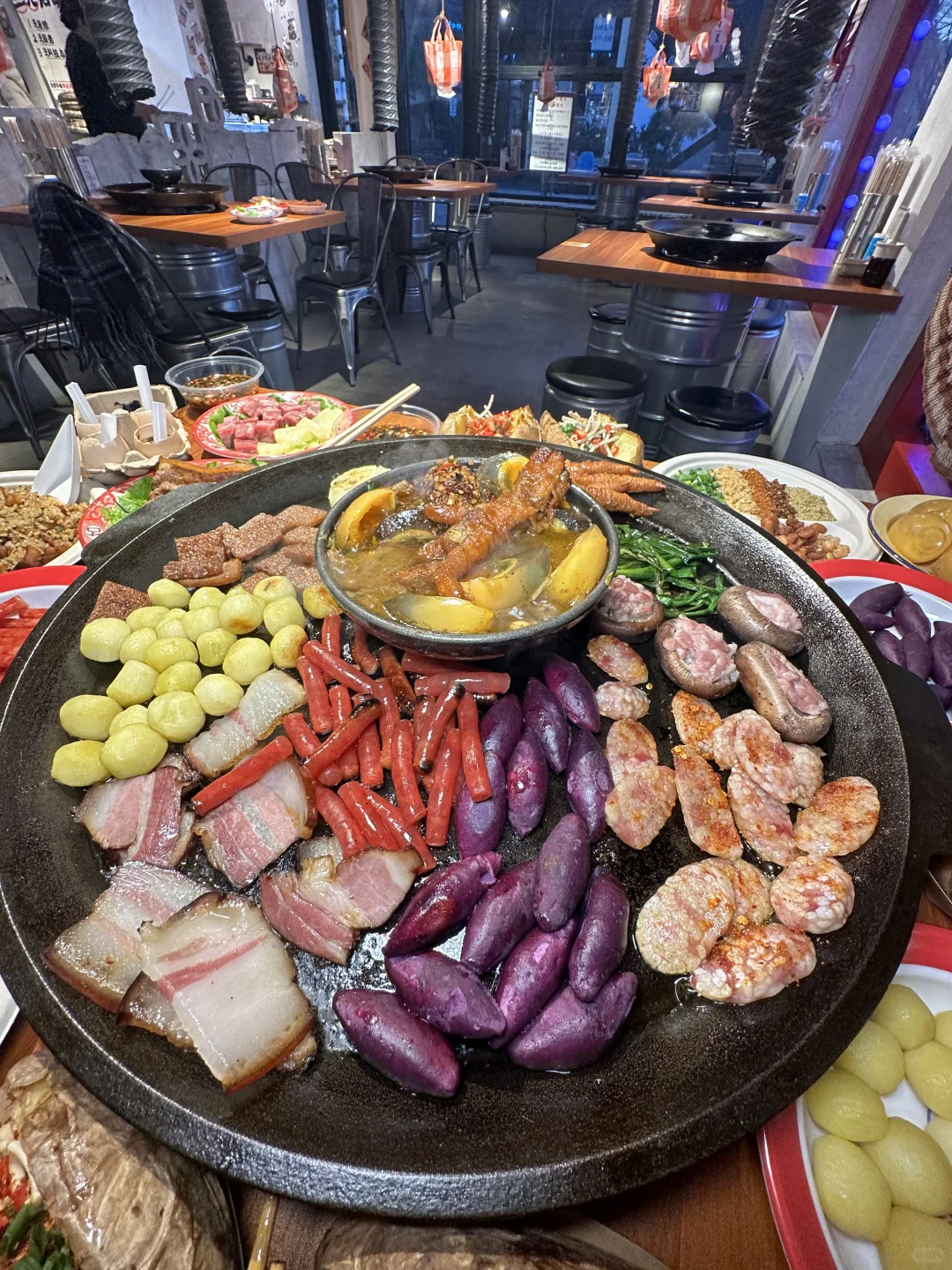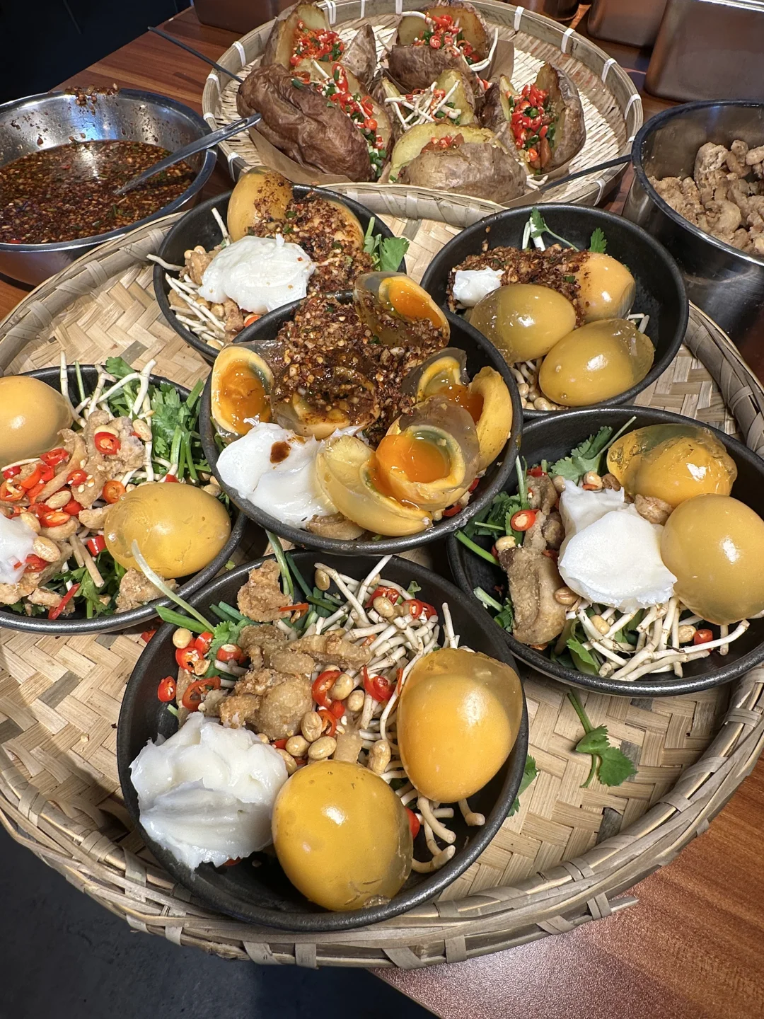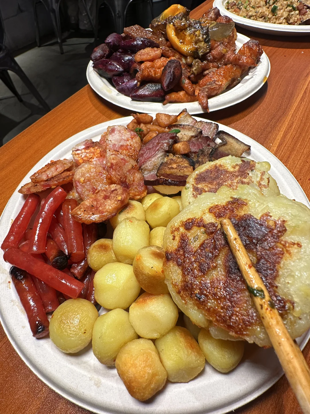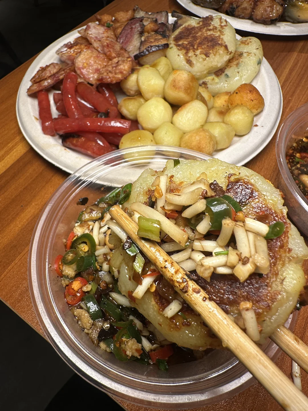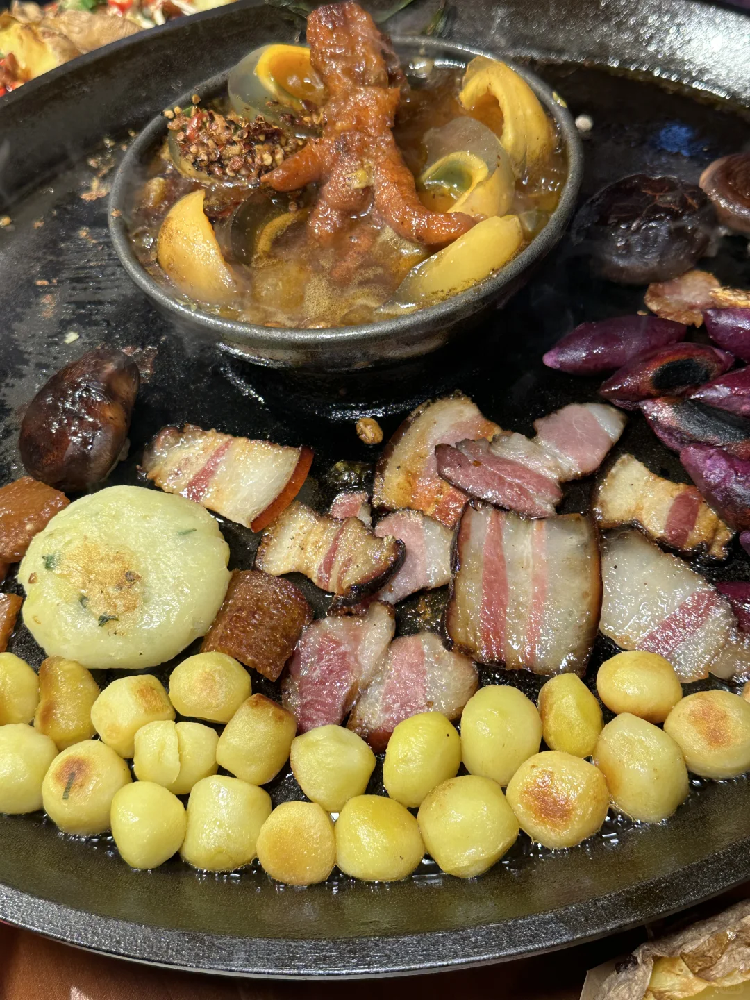 去贵州的时候狂吃一烙锅,实在太香了!北京终于也有这一口了!中间蘸水巨香,里面一定要加一份皮蛋!软乎乎特好吃!烤腊肉出来的油继续烤土豆🥔,配蘸水和蛋包洋芋一个味道!真的离开贵阳最馋这一小口了!他家的冰浆也很正宗,和安顺冰浆味道90%相似度!!