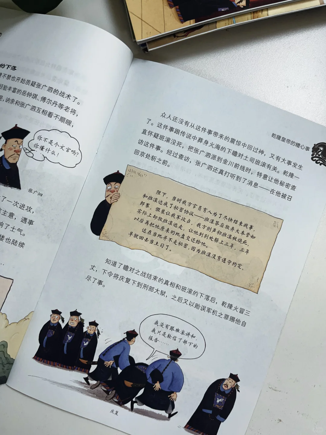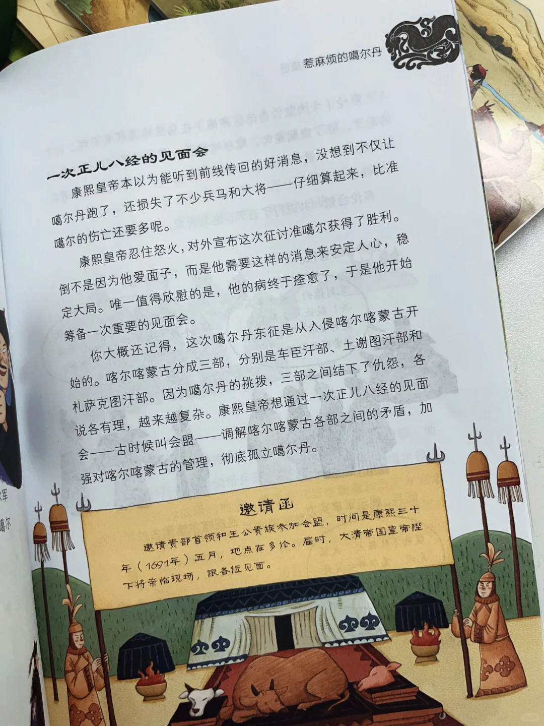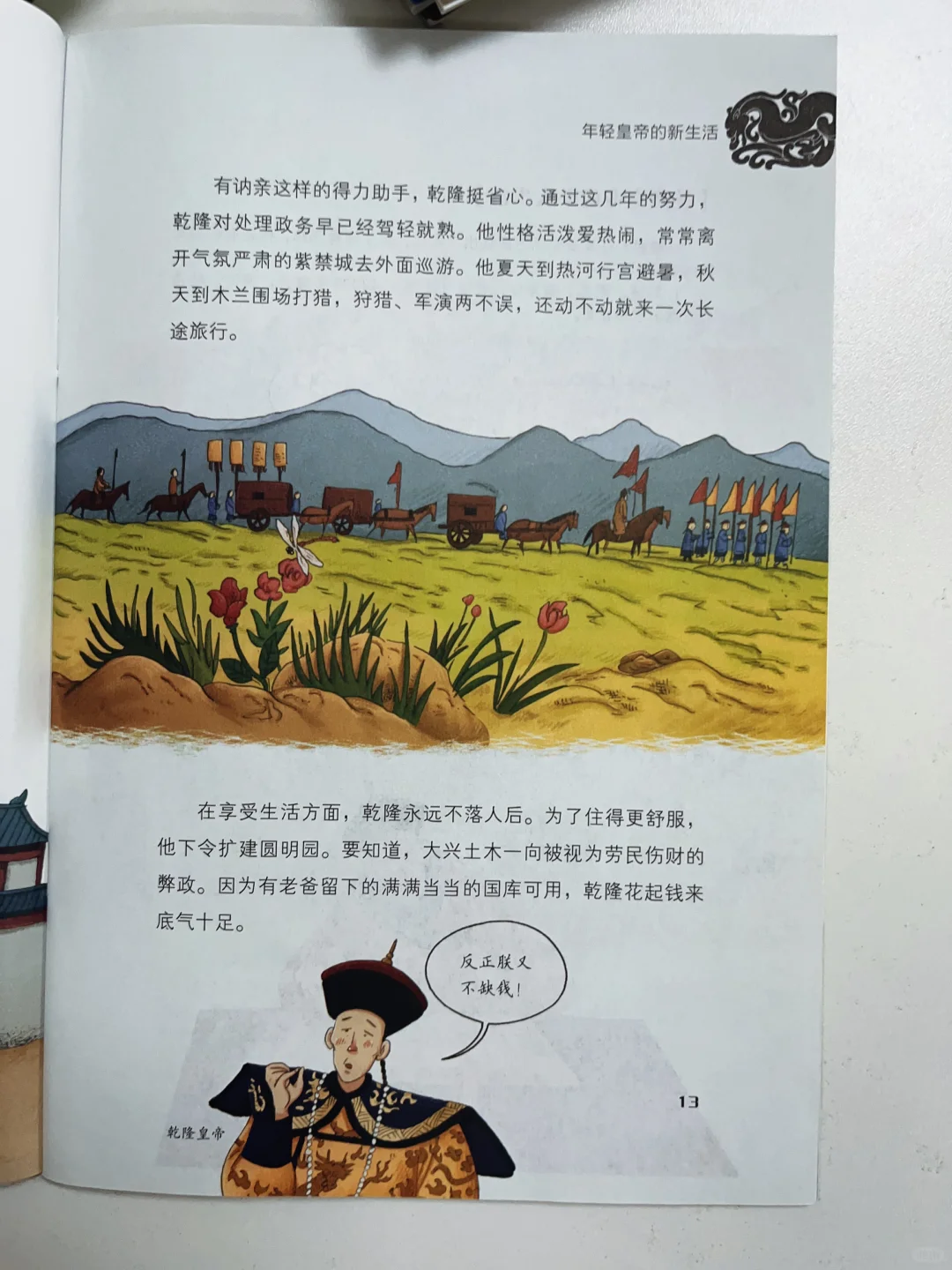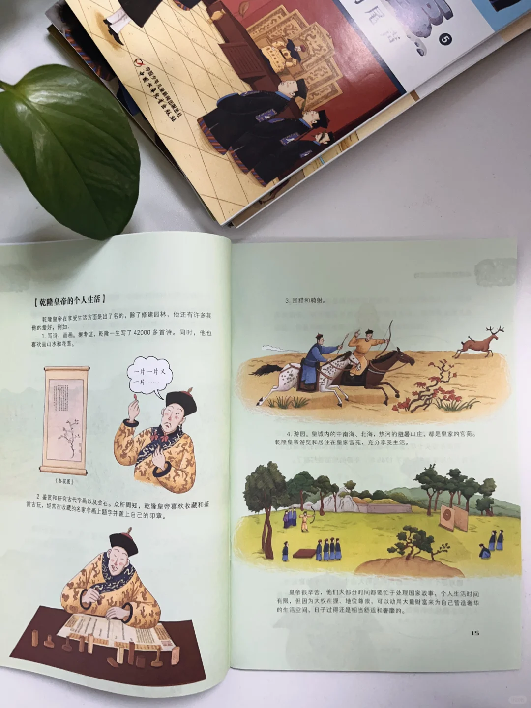 虽然每册都是以重要历史人物或历史事件为主题,但是涉及到当朝的衣食住行,经济,地理地貌,文学作品,历史典故,乃至小古文等,是围绕历史故事展开的历史文学盛宴!就相当于把当时人们的生活还原到娃儿的眼前,遥远的历史不再陌生,娃儿代入感很强!