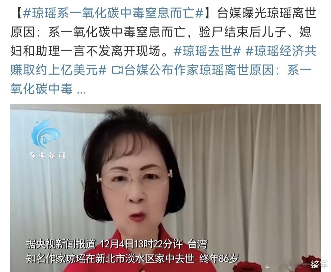 琼瑶系一氧化碳中毒窒息而亡 绝大部分人都是,好死不如赖活!被她的勇敢所打动,天堂没有疾病,您永远活在大家心中!