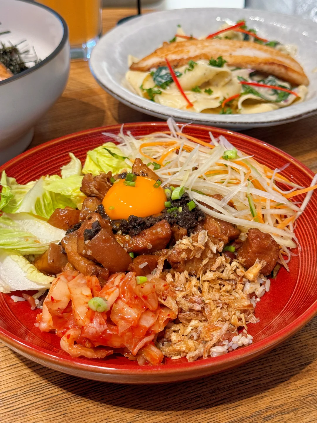 有没有跟我一样就喜欢冬天蹲蹲Wagas上新的 沃门信徒都在等着这一口冬日能量碗 这次12月上新终于把高价口味又浓郁黑松露跟干净饮食融合起来啦 每一个看着都很好吃 - ✅黑松露慢卤肉酱热身碗 满满黑松露搭配肉酱淋上灵魂葱油,每一粒米饭都是裹着浓浓酱汁,而且里面的蔬菜和泡菜的加入,让整个热身碗更加有灵魂! ✅黑松露鲷鱼奶油意面 我最喜欢的意式宽面,裹着浓郁黑松露酱汁,一口下去能吃的到黑松露的香气和奶油的浓郁,再来一口鲷鱼和菠菜,浓郁口感带有些许清新,热乎乎的真的很不错!