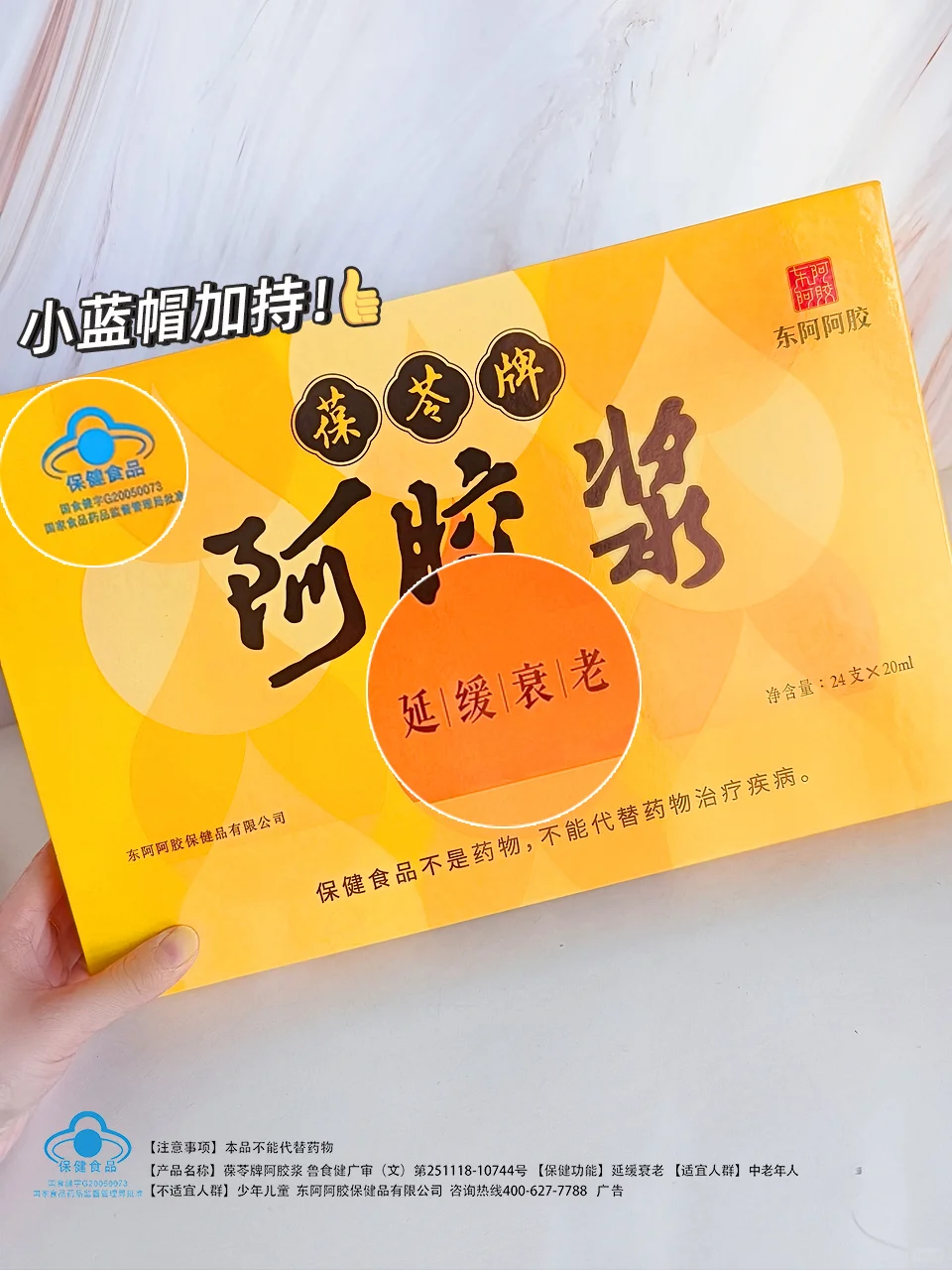 阿胶作为药食同源的食材真的很全面!从中医角度讲,它是《本草纲目》中的本经上品。葆苓阿胶浆含有粗多糖和总黄酮,很多大牌抗老精华里都有,这两种成分都是抵抗自由基的扛把子,可以达成延缓衰老的功效,外包装上也是直接打了【延缓衰老】四个大字,真的给人很踏实的感觉。
