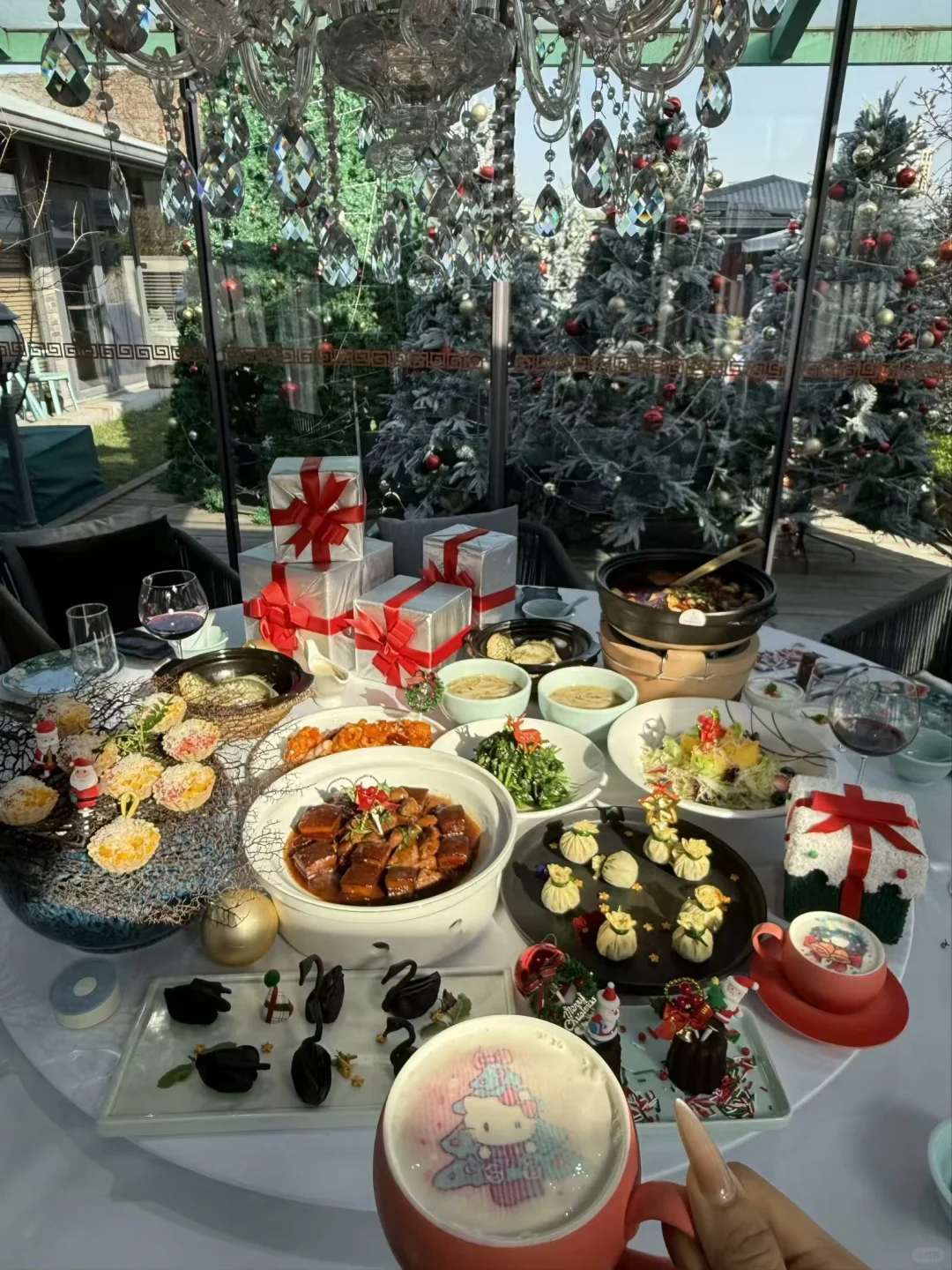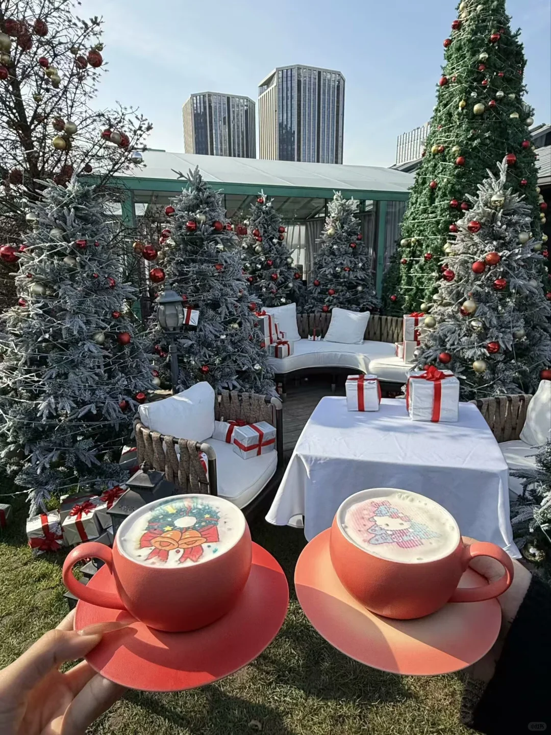 🎉 除了美食,圣诞花园露台也是一大亮点!🌿 灯光璀璨,圣诞树下的座位,让你在享受美食的同时,也能感受到浓厚的圣诞氛围!🎄