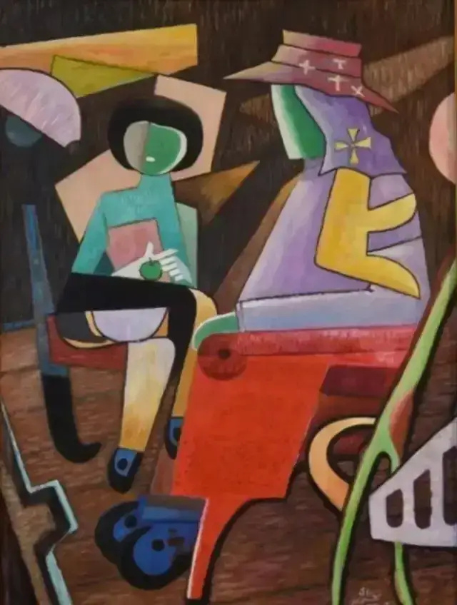 在视觉语言的打造上,蒋征显露出非凡的勇气。他摆脱色彩使用的常规,用看似随意却饱含巧思的色调搭配,构建出一个个富有张力的情感空间。明亮与昏暗的交错,热烈与宁静的冲撞,并非单纯的视觉玩乐,而是艺术家内心世界的展现,每一抹色彩都仿佛拥有生命,在画布上诉说着对世界的独特感受。