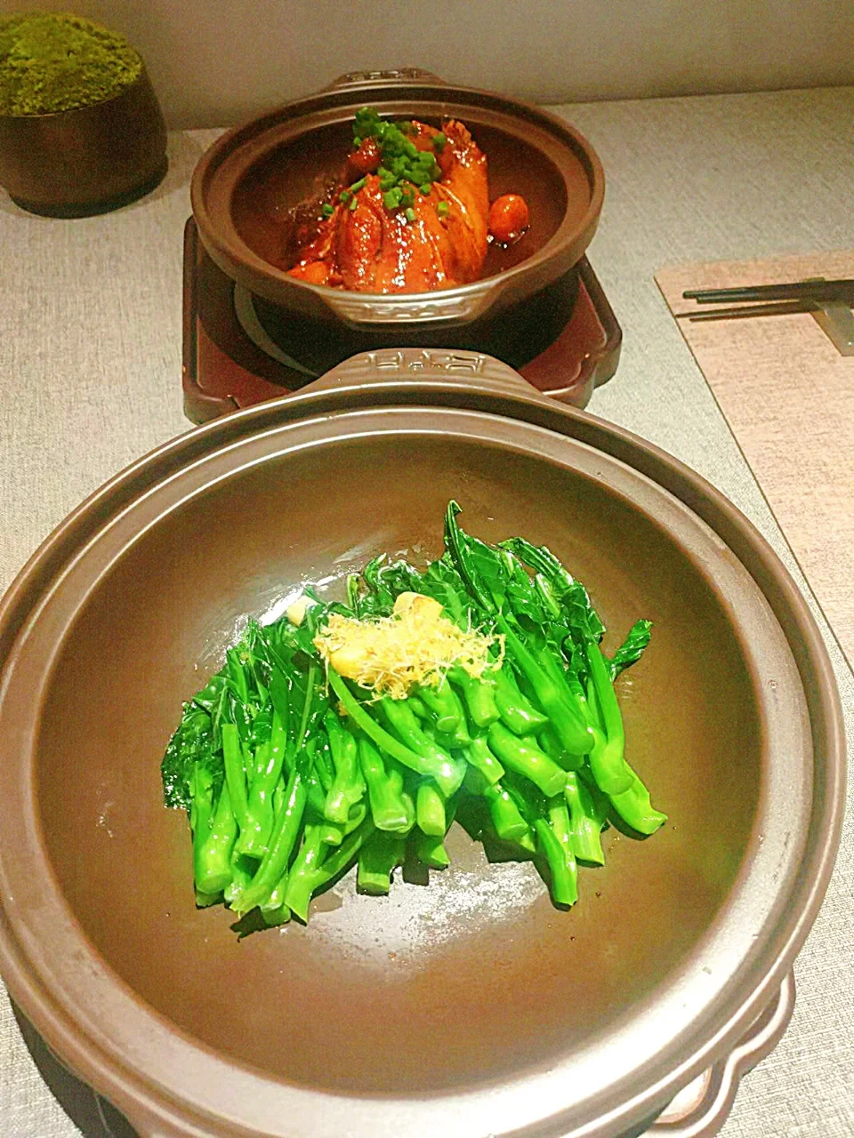 这道菜不同于其它店,采用砂锅🍲烹制,利用砂锅的特点把芥兰的水分焗的比较干爽,吃起来比较入味。