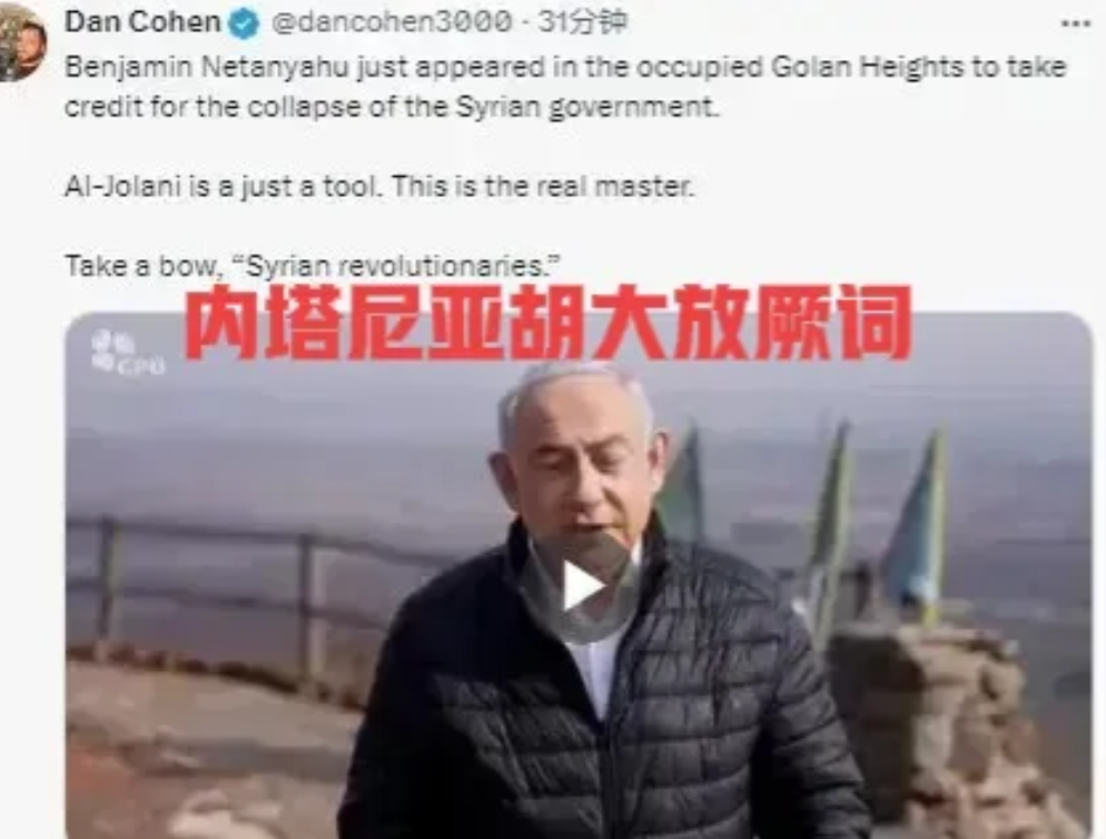 以色列不再掩饰野心!以总理内塔尼亚胡宣布,废止1974年与叙利亚签署的《脱离接触协议》,要并吞叙利亚领土!