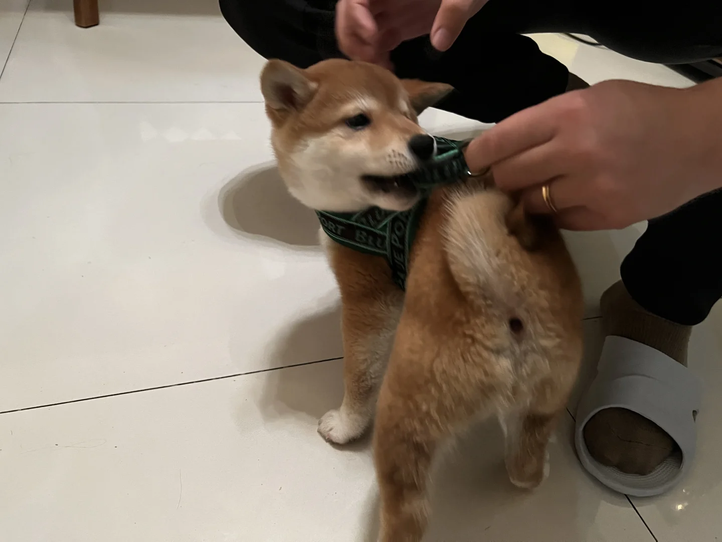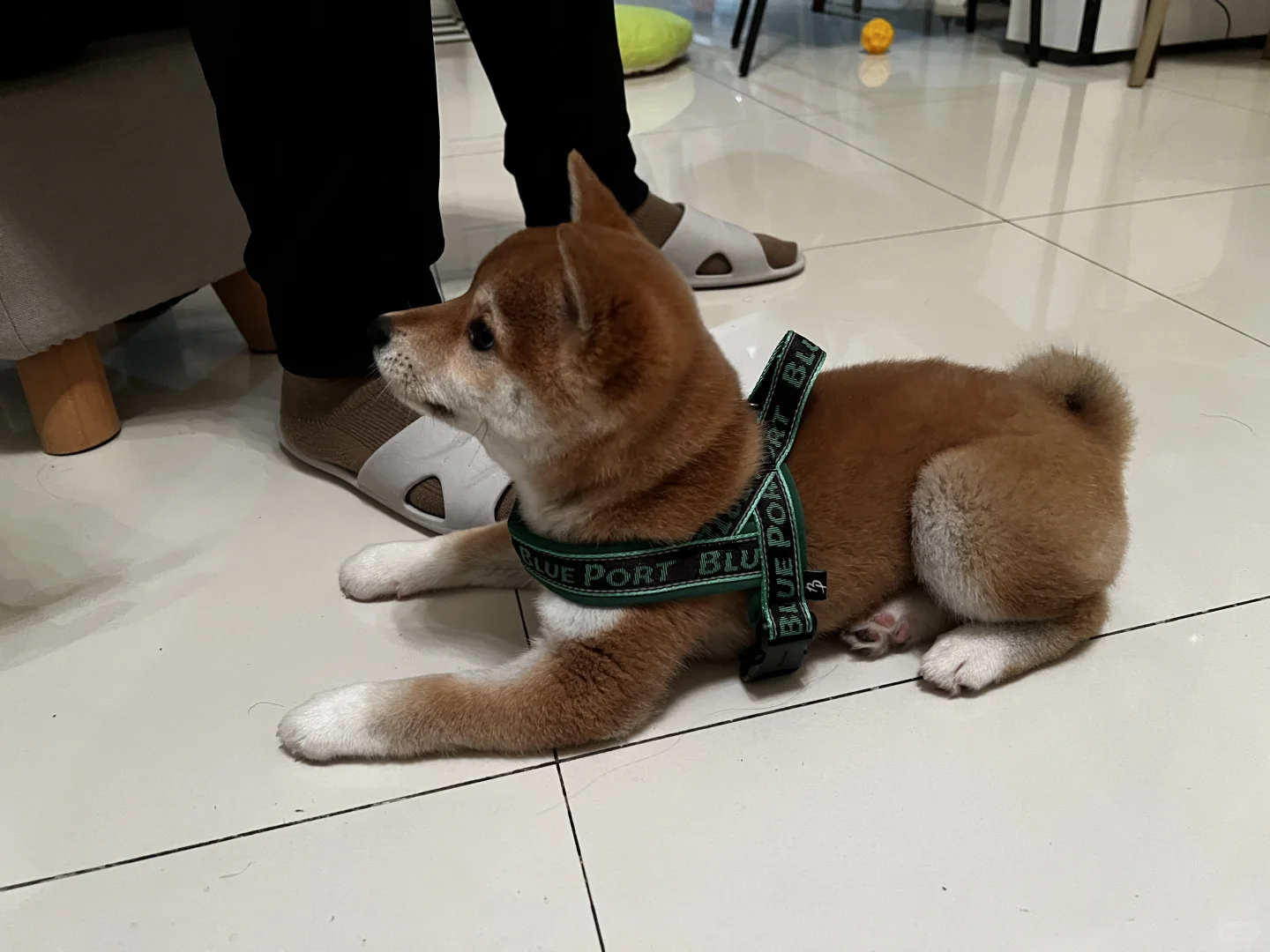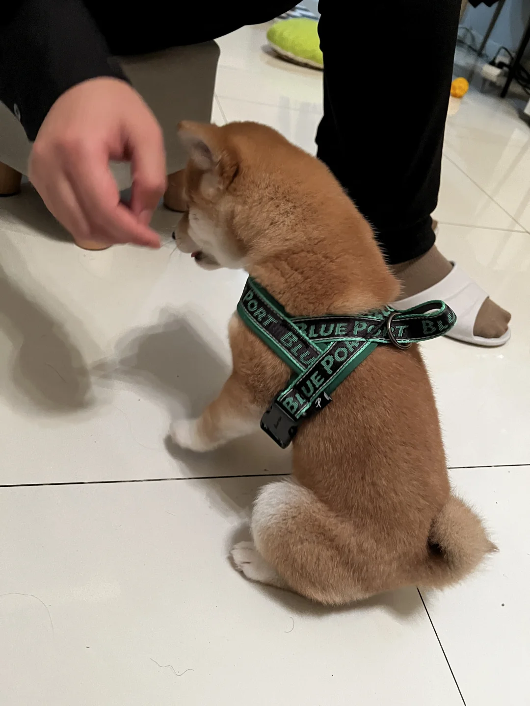 哈哈哈第一次穿马鞍胸背的小柴犬