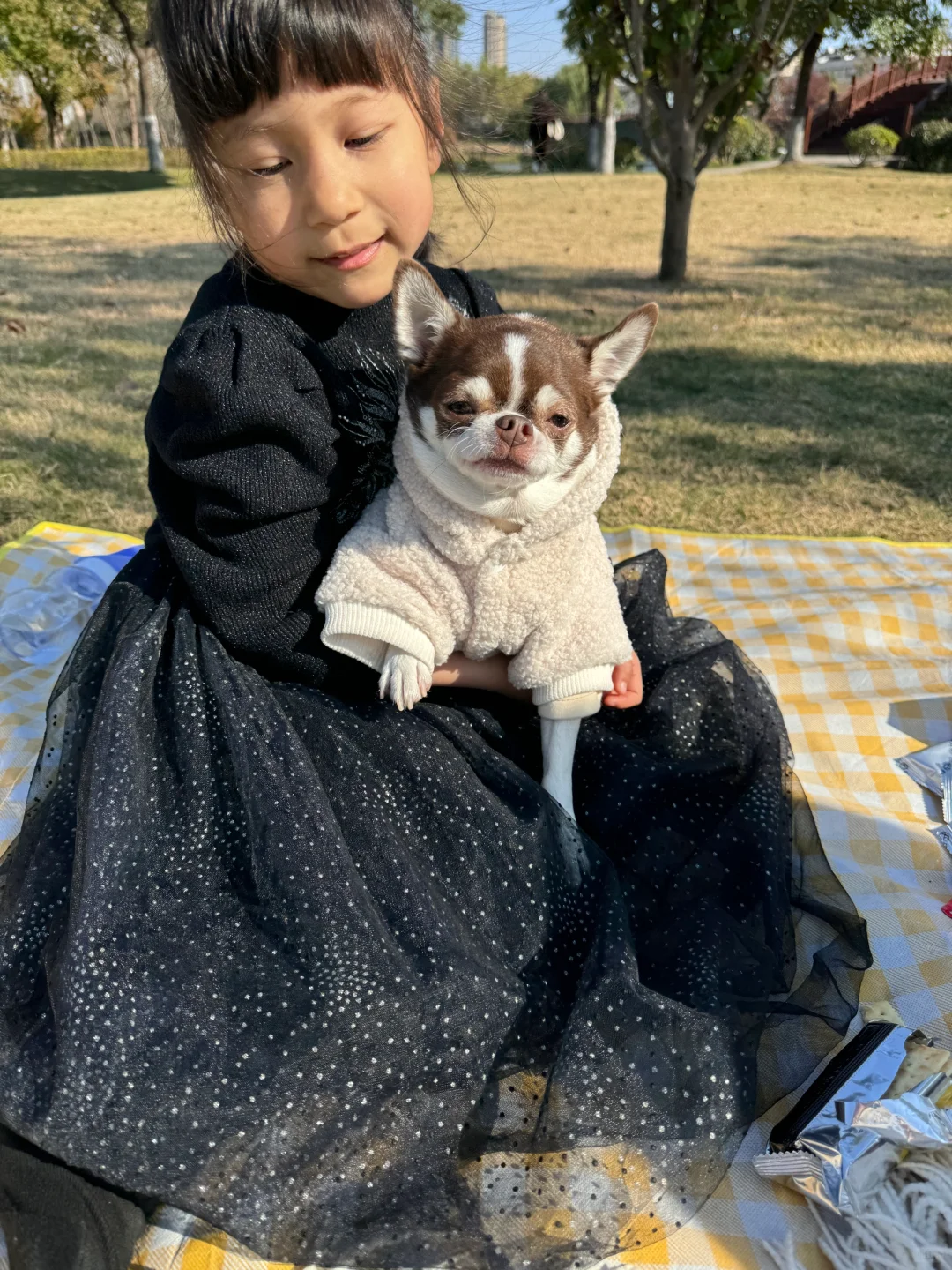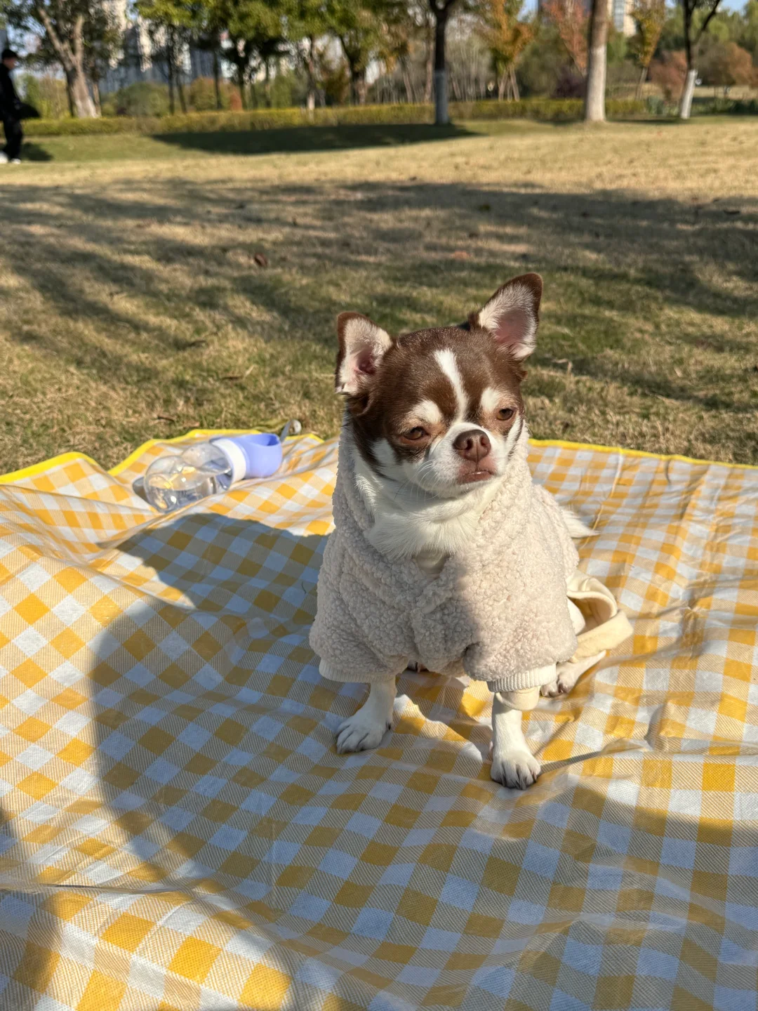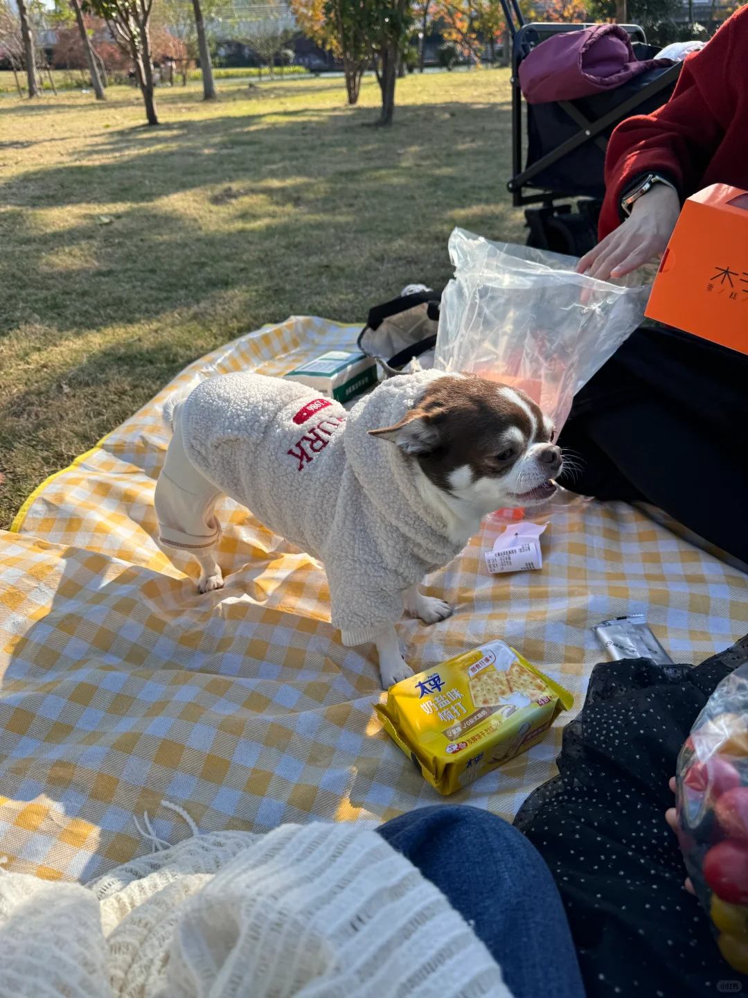 吉娃娃 带着宠物去户外 和宠物一起去郊游 带着狗狗去野餐 纯种吉娃娃 狗狗带来的幸福感