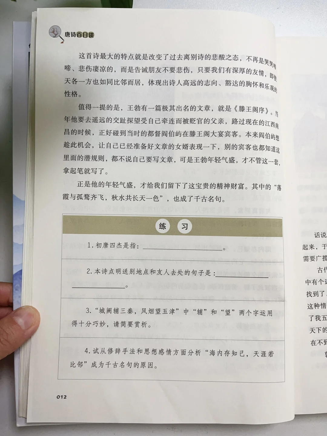 手绘插图再现诗歌意境,雅致古画呈现历史神韵,在图文并茂的趣味中学习唐诗,读完再看看对应练习,加深娃儿对唐诗的理解,小学中高年级的娃儿还可以动手练一练!形成学唐诗的完整闭环!