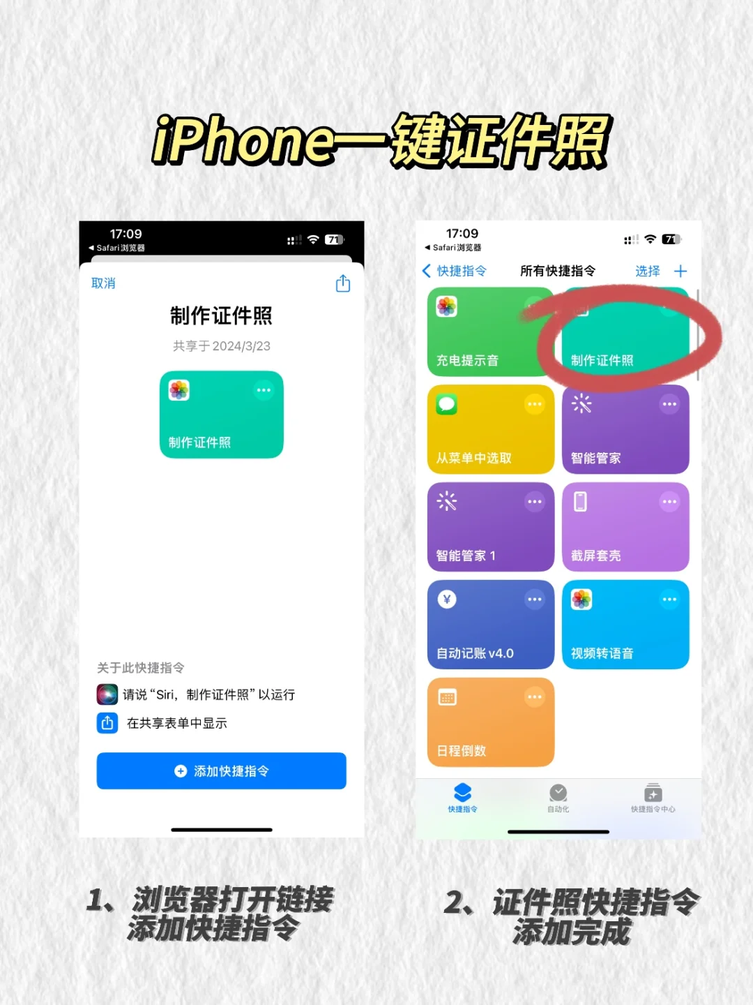 当当当当~就是一键制作证件照[萌萌哒R][萌萌哒R] 只要一个快捷指令就可以使用~ 太方便噜!!!