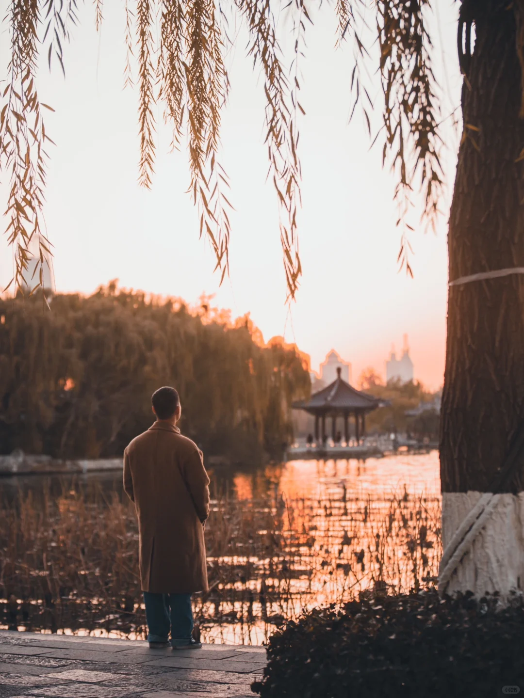 水杉似火,燃烧在湖岸,残荷虽败,却别有一番韵味。落日余晖倾洒,穿过一座座拱桥,金黄的光影铺满大地,宛如一幅天然的油画。