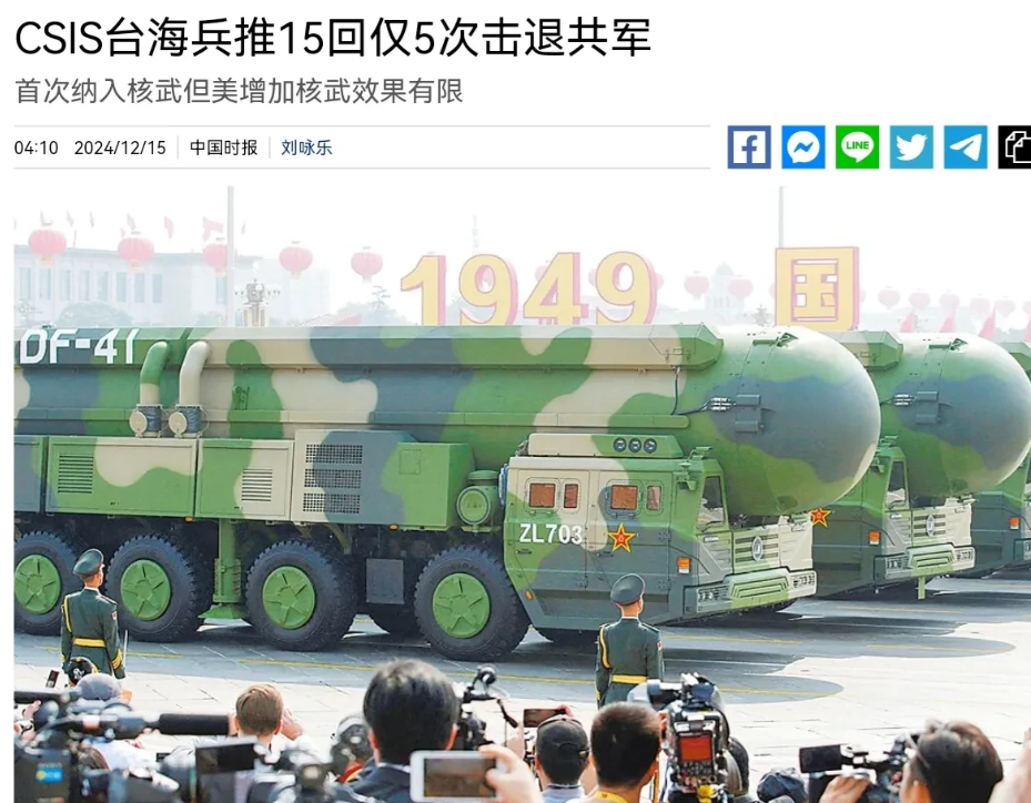 美国智库终于承认了,即便美国军事介入台湾问题,美国也无法确保稳赢,并且美国的输面更大!12月15日,根据岛内媒体报道,岛内媒体称美国智库CSIS和MIT最近进行了十五次兵推。结果显示,15回兵推中,美军仅5次击退解放军。而即便美国进一步加强核武能力,对于能否阻止大陆影响也相当有限。