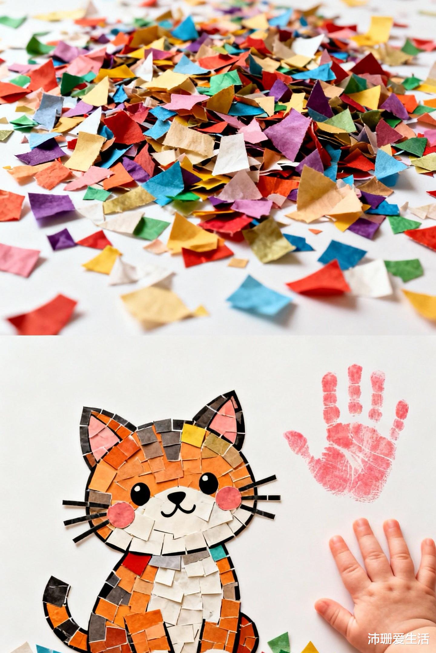 · 参与并引导: 和他一起把碎纸片拼贴成画,或者在他涂鸦的基础上添几笔,讲个故事。