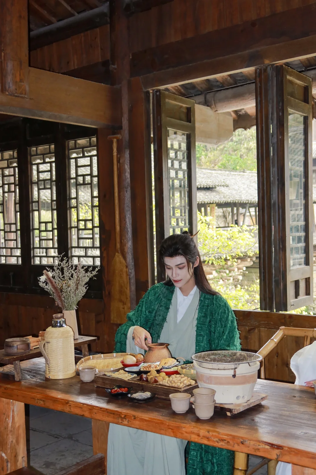 围炉煮茶,看窗外就是一幅画