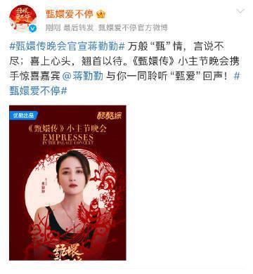 甄嬛传晚会惊喜嘉宾蒋勤勤 蒋勤勤来甄嬛传晚会,这真的是让人直呼好家伙,作为番外成员被大家说过那么多次,这一次可算终于要同台了。我真的是止不住的期待。