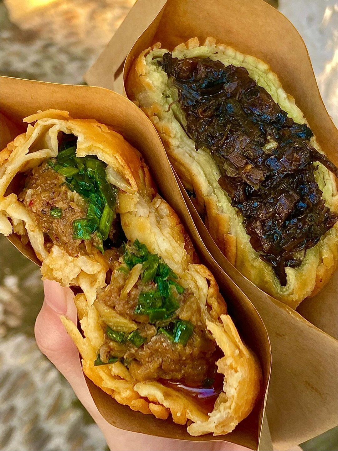 苏州观前街的 金丝牛肉灌饼,超级麻辣香。一口下去绝对爆汁。 风味人间 | 食