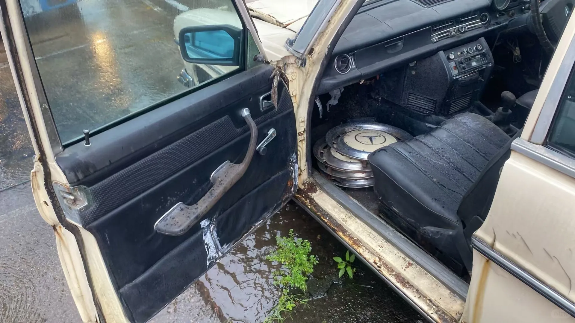 路边发现了一台被遗弃的W115,此车在70年代拥有它的人也是妥妥的中产,优雅的车身线条,以及大量的镀铬材质,让它成为了汽车界的艺术品。如今被遗弃在这里,也像是一个落寞的王者在沉睡。
