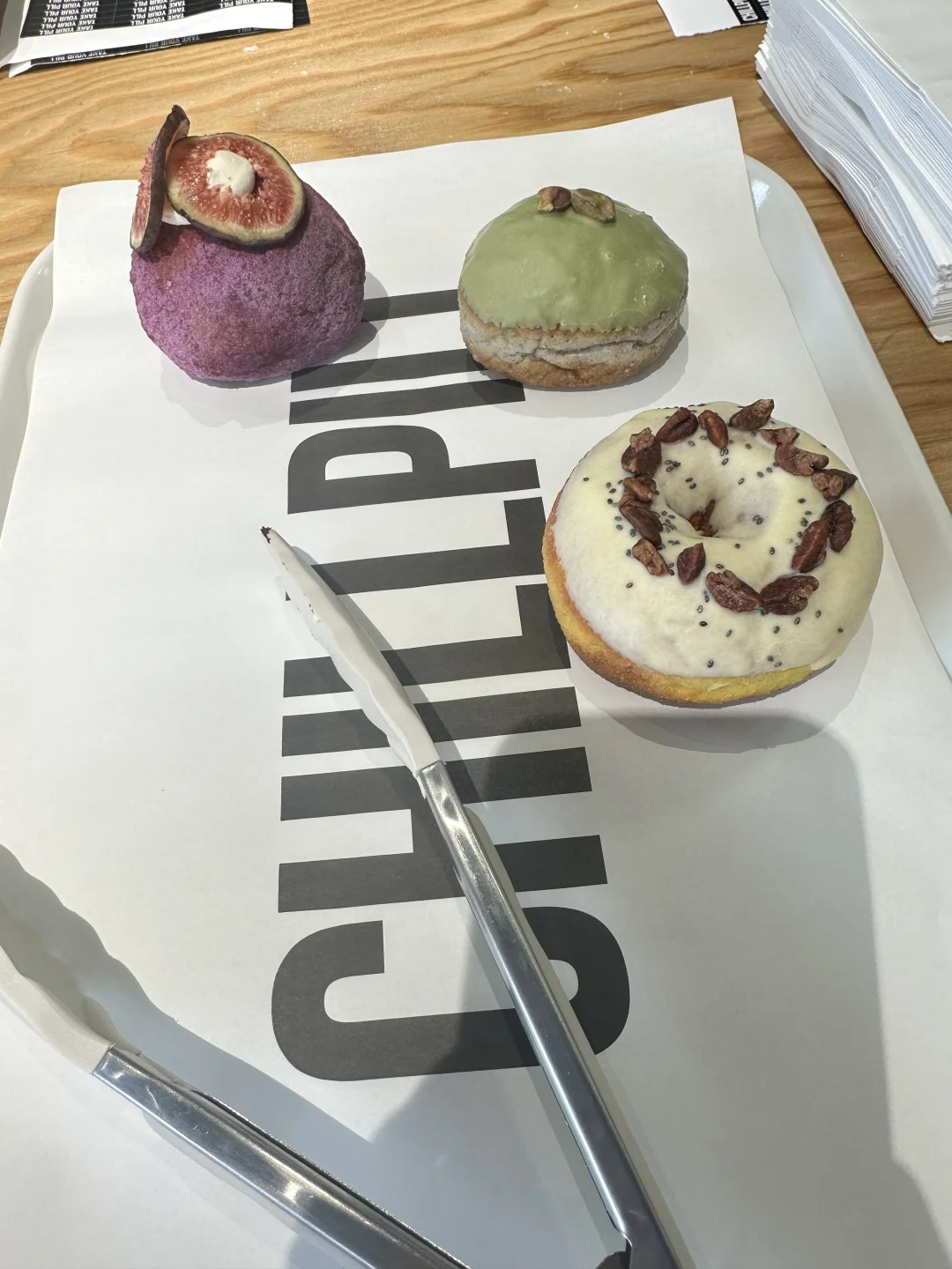 甜甜圈🍩爱好者有福啦! 就在东四大街上新开了一家甜甜圈店! 品种超级多 每个20左右 料特别足 满满一口回味… 厚实但不甜腻 太好吃了 一口气三口没够… 试吃了几个 几乎每个都不踩雷… 店名:CHILLPILL甜甜圈 地址:北新桥街道东四北大街62号(開飯楼上) 消防站对面胡同里 上二楼(最后一张图)