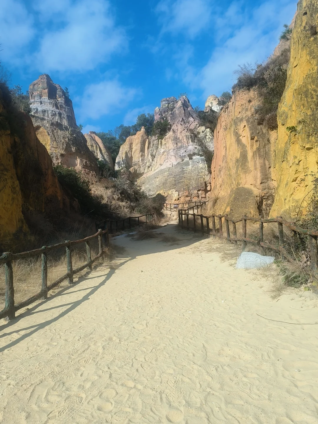 来云南,三林不可少 石林,沙林,土林 这篇谈谈沙林 📍陆良彩色沙林 🎫 70💰 🚗 昆明市区出发自驾1:20分钟左右 游览时长:2小时左右 🔖彩色沙林大约形成于3亿多年以前,是地震冲击、地壳运动、岩浆喷射和风雨侵蚀等因素逐步影响而形成的。沙林远看成林,近看成峰,最高达30多米,形成沙峰、沙柱、沙屏和沙带诸多形态。沙林以石英砂为主,含有48种微量元素,因而形成了各种不同色调,以红、黄、白为主色调,间以青、蓝、黑、灰、粉红等颜色,一共有12种颜色各异的沙子,随着季节、气候和光照等因素的变化,变幻出各种不同色调的观赏效果。 ✓推荐理由 色彩碰撞,童话又浪漫 人少好拍,适合游玩徒步