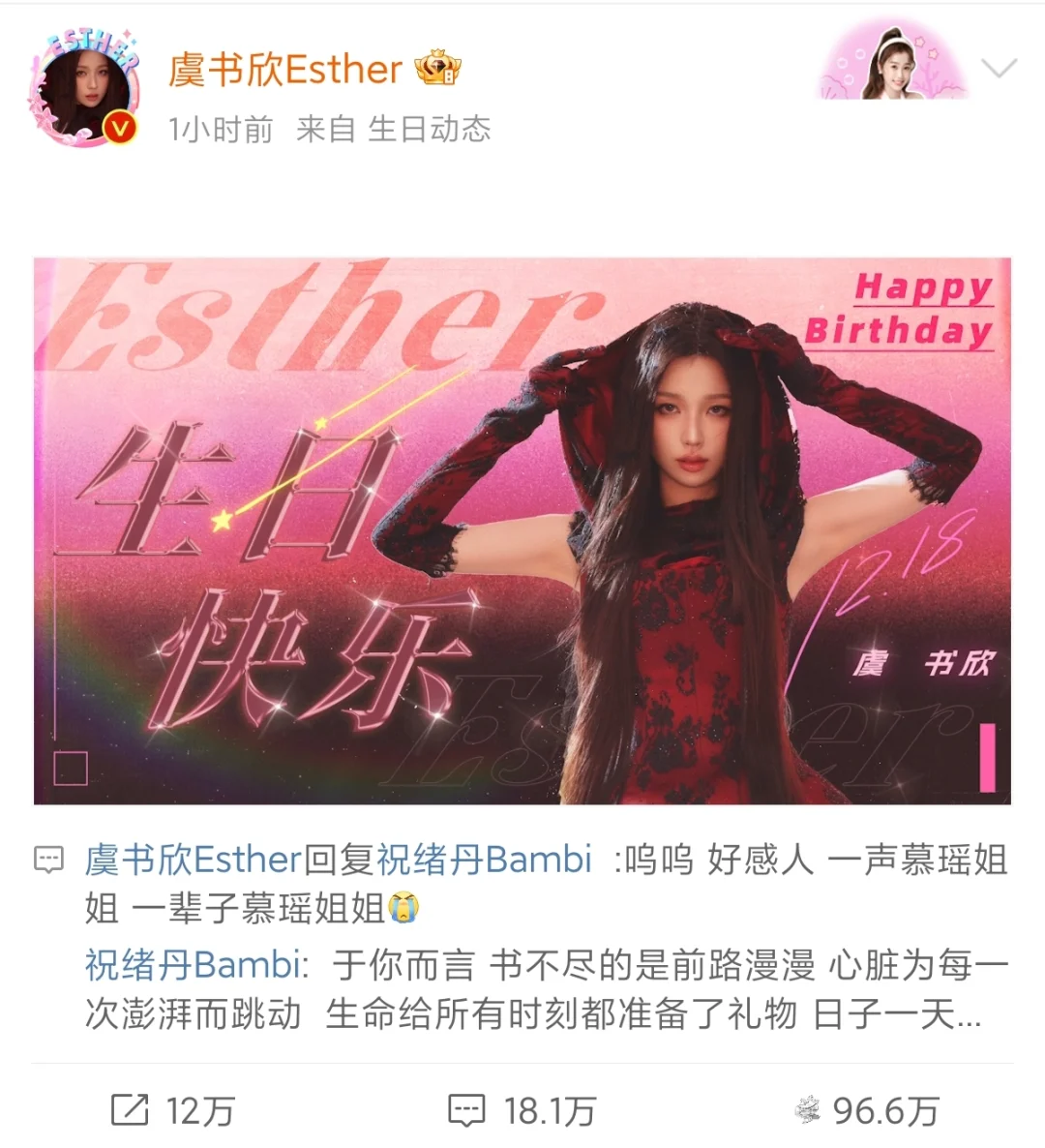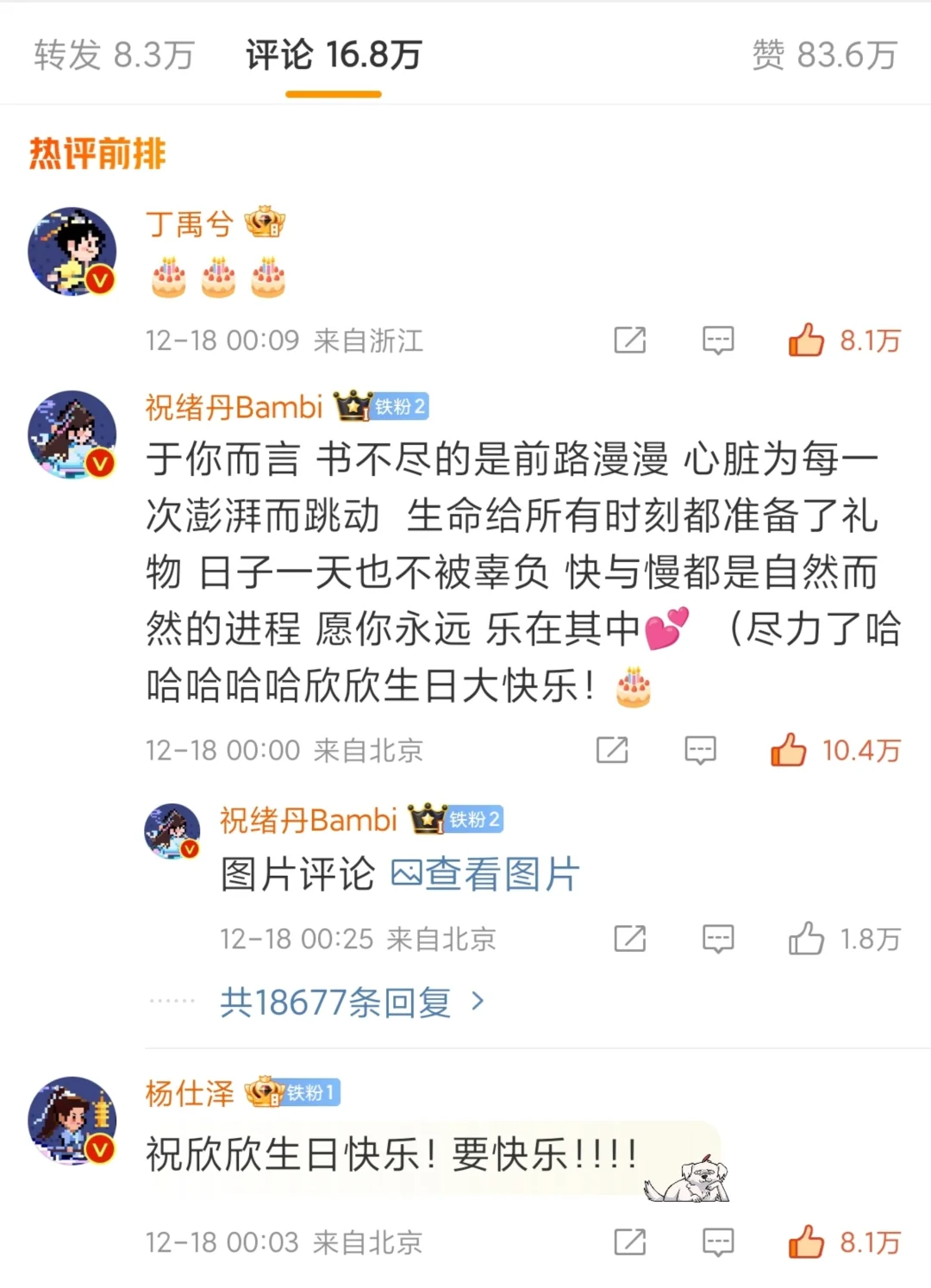 泗洪鞠婧祎 2 2024-12-19 18:36 我是这么想哈,假如说你生日发朋友圈,你另一半一定要在这朋友圈点赞+写作文吗?明明他人已经在你身边,陪着你吃蛋糕。其实陪着过生日的男友估计也就点个赞发句祝福比较多,因为他私下已经亲口对你说了,该给的礼物肯定也送到手了再说明星的社交平台本来就容易被断章取义,🔔不避嫌就已经是磕点啦反正我相信他私下肯定有给🐟准备生日礼物