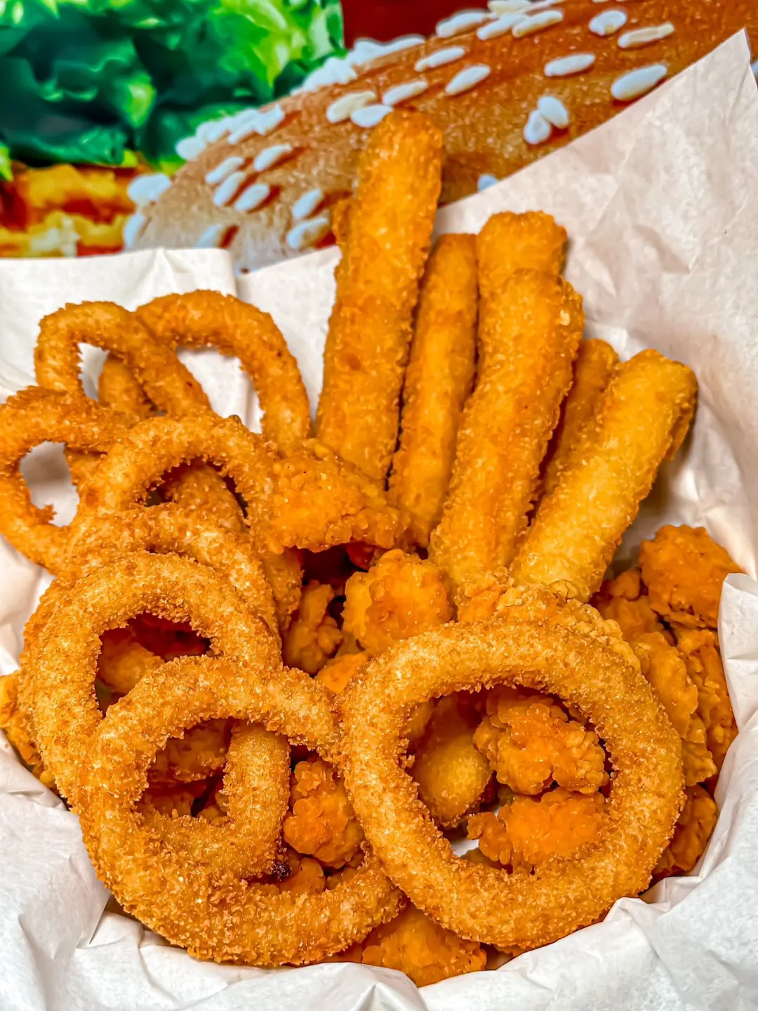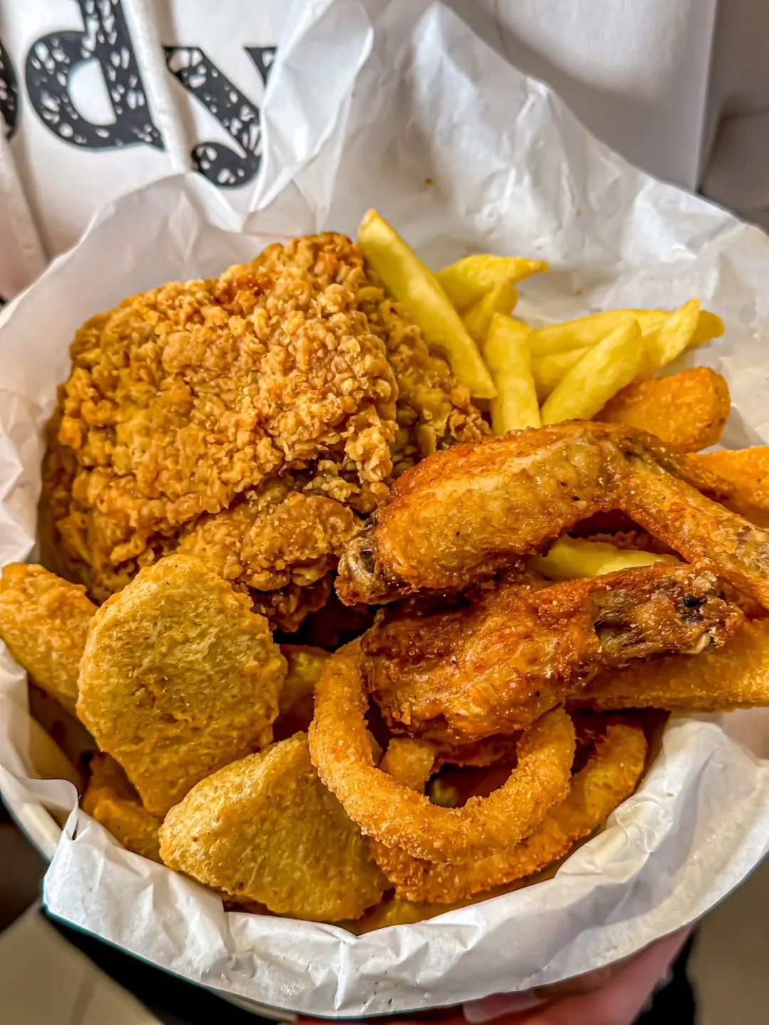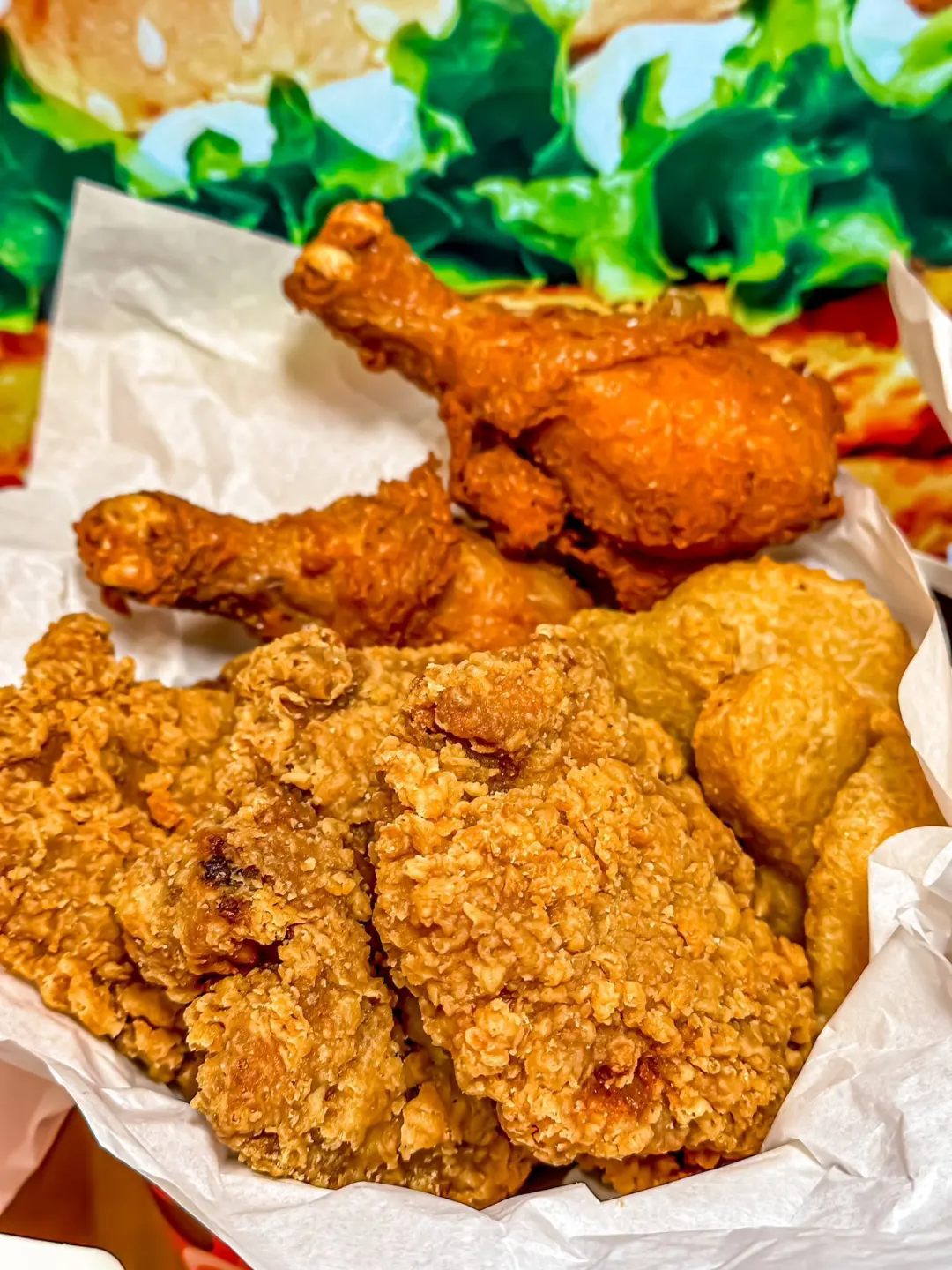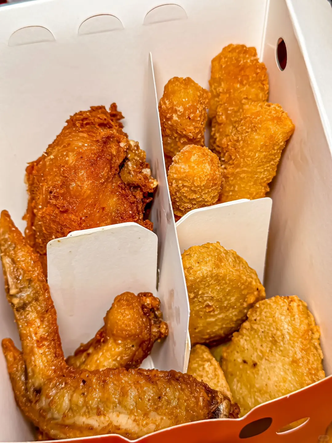 汉堡王推出宝藏套餐——39.9元国王桶超值优惠套餐,简直太开心😁。 这个桶里的内容超丰富,有7款经典小食自由搭配有霸王脆鸡,王道嫰香鸡块,霸王鸡条,洋葱圈,薯霸王(中),王道鸡米花……人选5种组合。 🍟薯霸王每一根都外酥里嫩,蘸上番茄酱完美搭配,洋葱圈香脆不油腻,还有王道椒香鸡腿🍗🍗皮脆肉嫩,一口脱骨。饮料是大杯的可乐,气泡十足,搭配着吃真的太过瘾。 咱就是说,打工人忙碌一天,下班后买个国王桶,安抚下辛苦的小心灵。39.9就能吃到5种美食,简直不要太幸福。/:heart