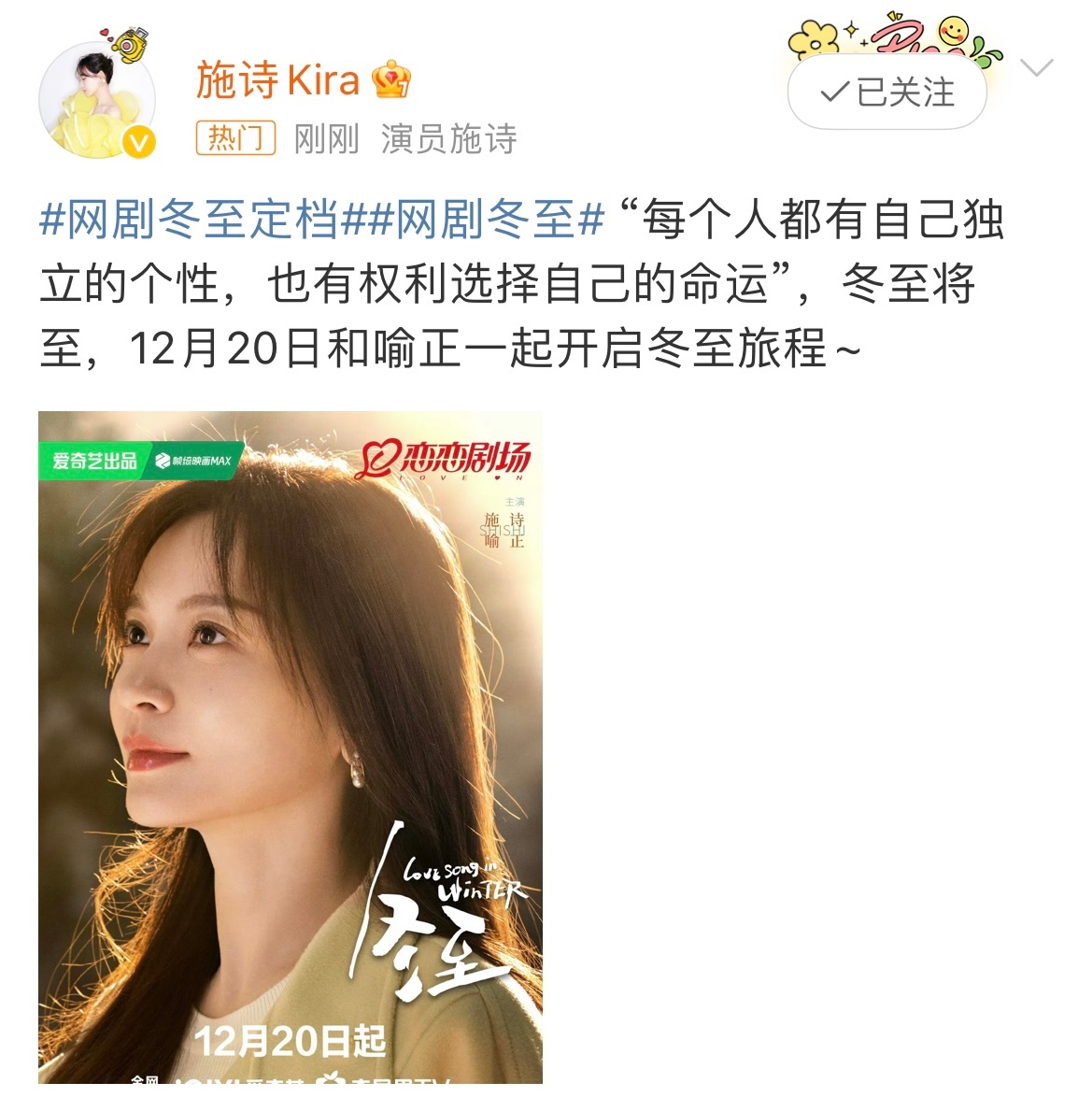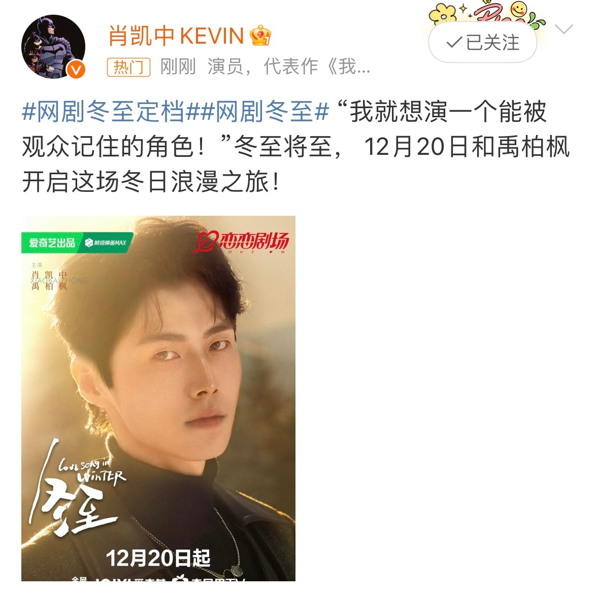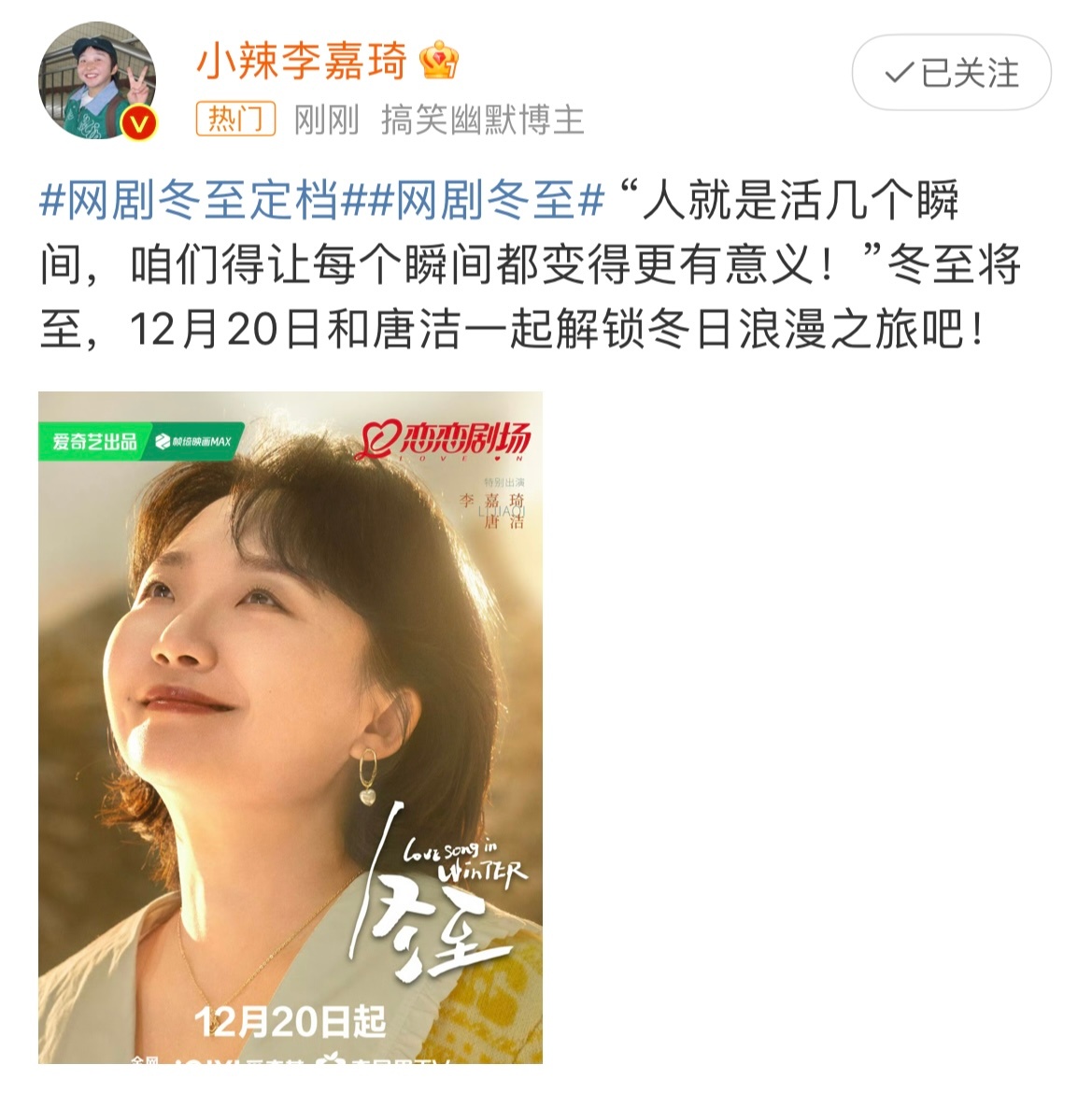 网剧冬至定档 期待许久的网剧冬至终于给咱们观众定档了!那就让我们一起耐心等待1220这一天的到来吧!相信这些实力派演员不会让观众失望。