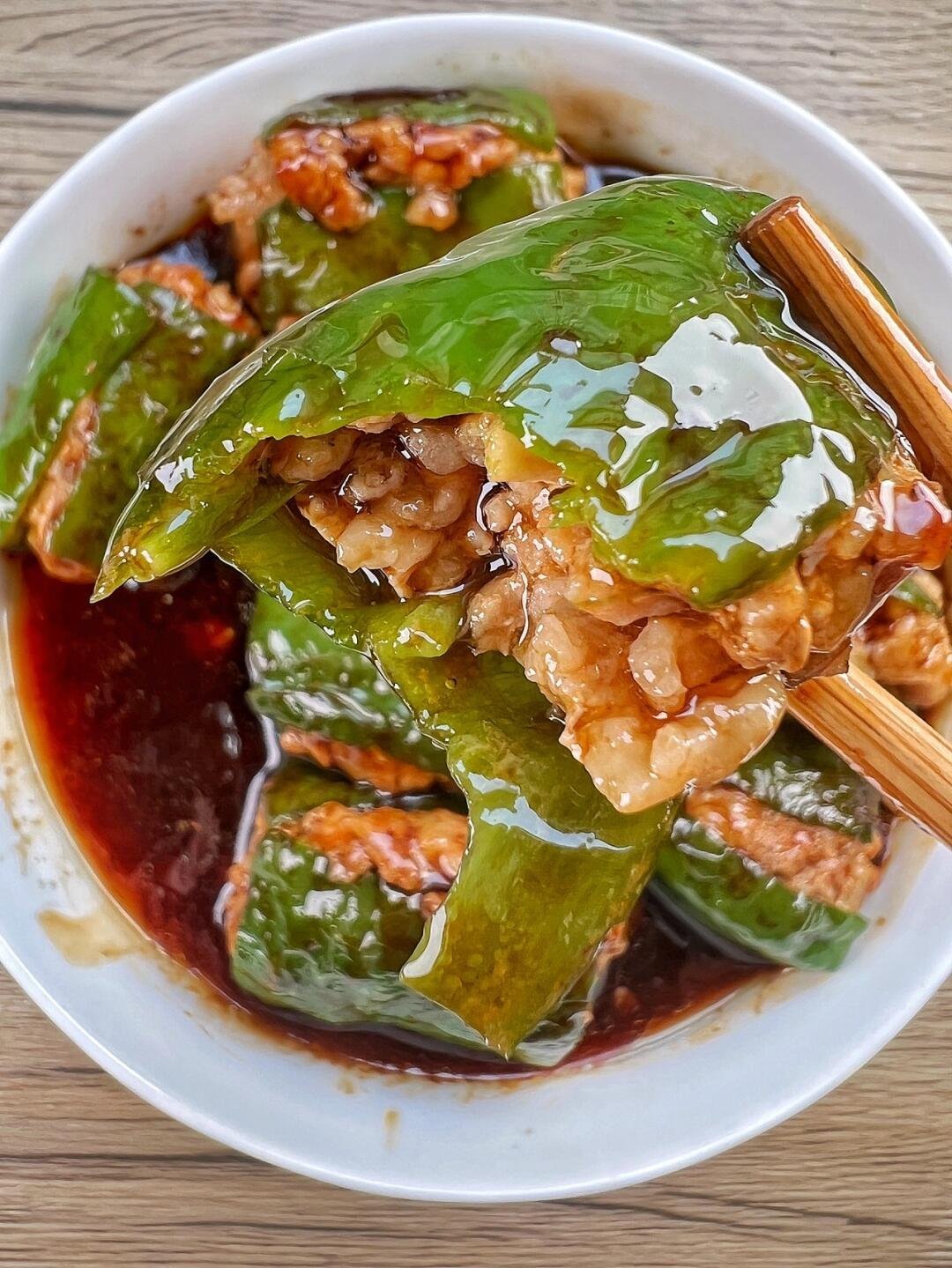 风味人间 | 食谱 | 青椒塞肉好吃又下饭。喜欢吃辣的就可以挑那种辣的辣椒