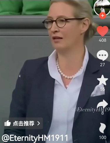 魏德尔呢?淡定得很,没搭理梅尔茨那些阴阳怪气。她只管重复自己的施政纲领,条理清晰,不紧不慢。