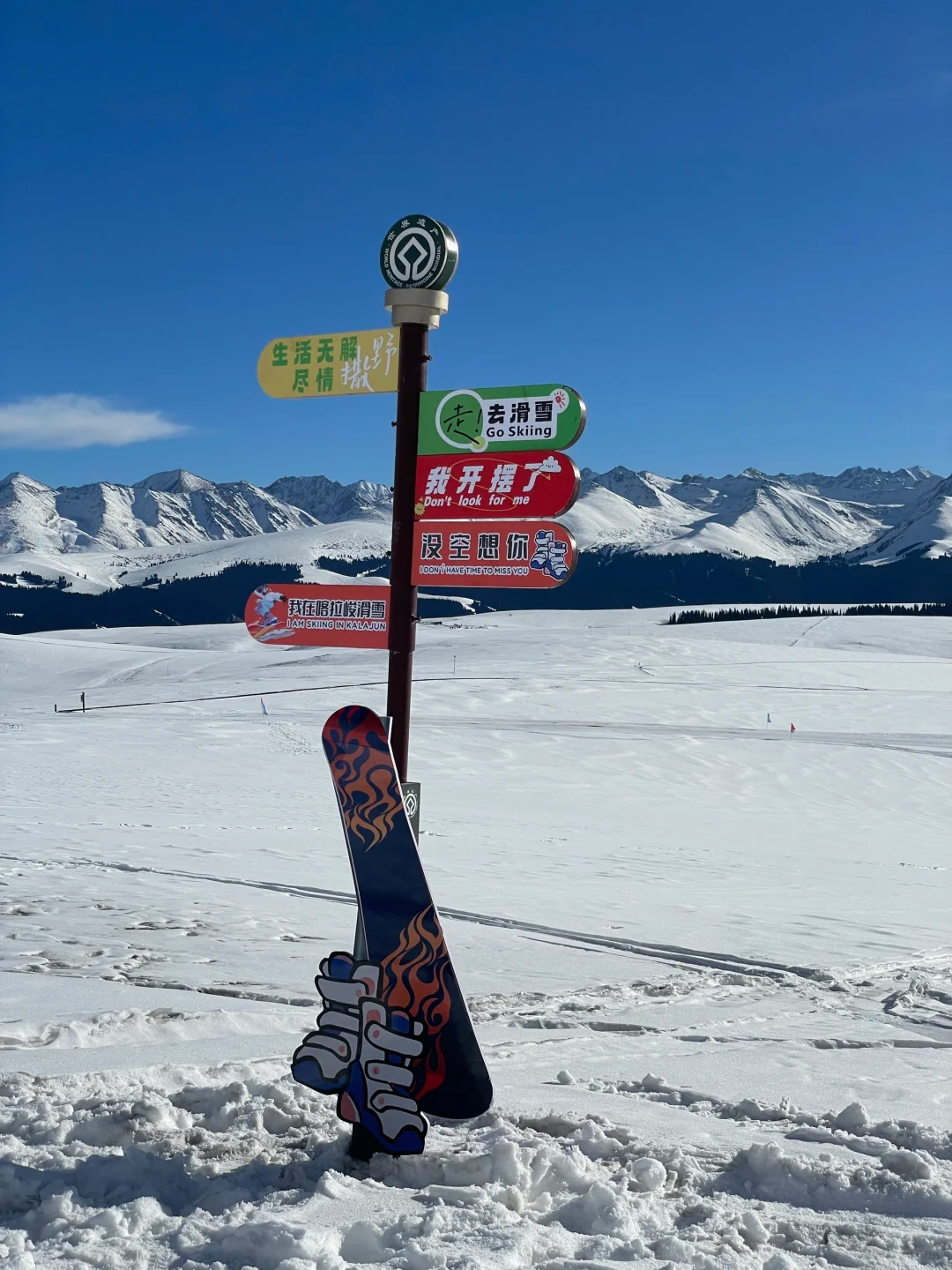 ⛷️喀拉峻野雪公园:导航布拉克门票入口,然后从景区入口再一路沿着鲜花台方向开,快到野雪公园路上会有指引牌,景区入口开到野雪公园30分钟