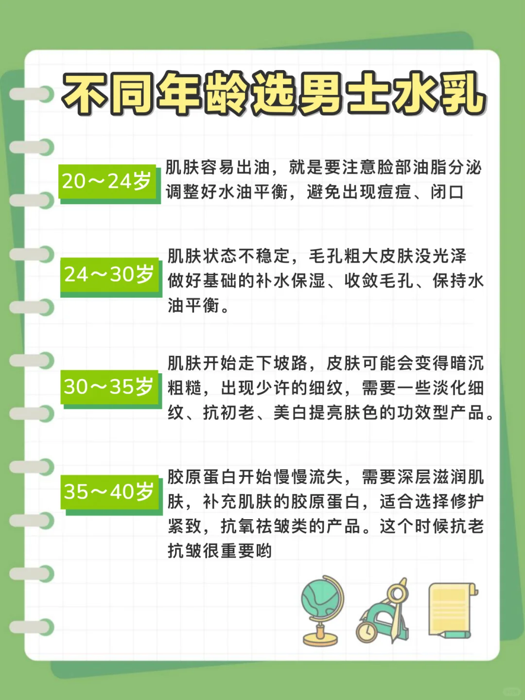 今天就为大家揭秘如何根据年龄选择合适的男士护肤套装,需要的参考一下~