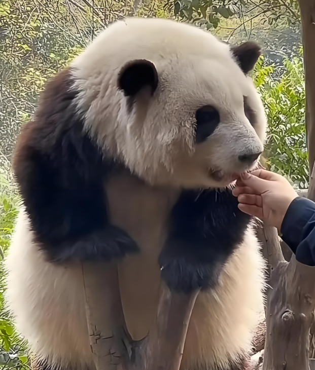 别看它还没完全成年,2025年体重就已达85公斤,比同龄幼崽平均体重高出20多公斤。别看它小,胃口可不小,每天除了追饲养员、掉沟里,剩下的时间都在炫饭,竹笋、窝窝头、苹果来者不拒,因为总爱摔跤,消耗的能量还没吃进去的多,久而久之,就胖成了一个小毛球,浑身圆滚滚的,连爬树都要费好大的劲,爬一半就会因为太胖,进退两难,抱着树干茫然晃动,萌翻全场。