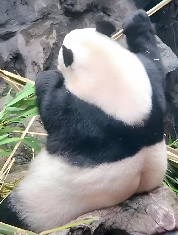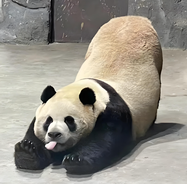 它睡觉的时候,总爱蜷成一团,四肢轮番在地上比划,像在梦里练什么独门功夫,睡得香还忙得欢,那圆滚滚的身子裹着绒毛,远看就像一个毛茸茸的大雪球。2024年底监测显示,迎迎体重稳定在102公斤,纯纯靠“睡+吃”堆出来的吨位。偶尔吃竹子时,还会因为太胖,不小心拽出吊篮,吓得立马躲开,连竹子都不敢碰,那慌张又笨拙的样子,完美诠释了“胖熊的脆弱”,体重也跟着睡眠时长一路飙升,稳坐胖熊榜第七名。