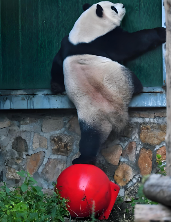 说出来你可能不信,萌兰每天运动量堪比健身博主,翻跟头、爬木架、踩玩具球样样精通,甚至还会“营业式”打滚,可架不住胃口好啊!2025年最新体重监测显示,它稳稳维持在110公斤左右,比同龄雄性熊猫平均体重高出一截。啃竹子能啃出“暴风吸入”的架势,窝窝头、苹果更是来者不拒,吃完就睡,睡醒就运动,主打一个“练得多吃更多”,体重稳中有升,胖得匀称又壮实,圆滚滚的身子裹着黑白绒毛,远看就像一个大号胶囊,过木架都得特意把屁屁放低才能过去,被游客喊“胖子”还会气到停嘴,委屈巴巴的样子又胖又萌。