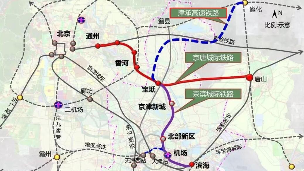 三条新铁路,一南一北一中连成片这次上马的项目有三个:京滨铁路至天津西站联络线、怀兴城际二期、津承城际铁路。别看京滨联络线只有23公里,却是关键“拼图”。它把北辰站和天津西站接在一起,设计时速200公里。右耳君有位在宝坻工作的朋友说,等通了以后,去天津市区开会可能二十来分钟就能到,比现在快出一杯咖啡的时间。