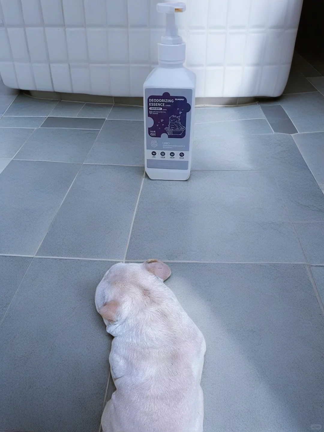 最近朋友推荐了一款他在亚宠展上发现的给狗子去体味的神器:ELMOPET(爱佩恋)的分解除臭精华,洗澡的时候加一点在沐浴露里面用或者洗澡之前给狗狗干抹,于是搞了一瓶来试试,这次给我家法斗宝宝奶糖洗澡澡的时候加了2泵进去,一下子体味就去的很干净啊,完全惊到我了,太神奇了,而且洗完后感觉好几天也没啥体味。