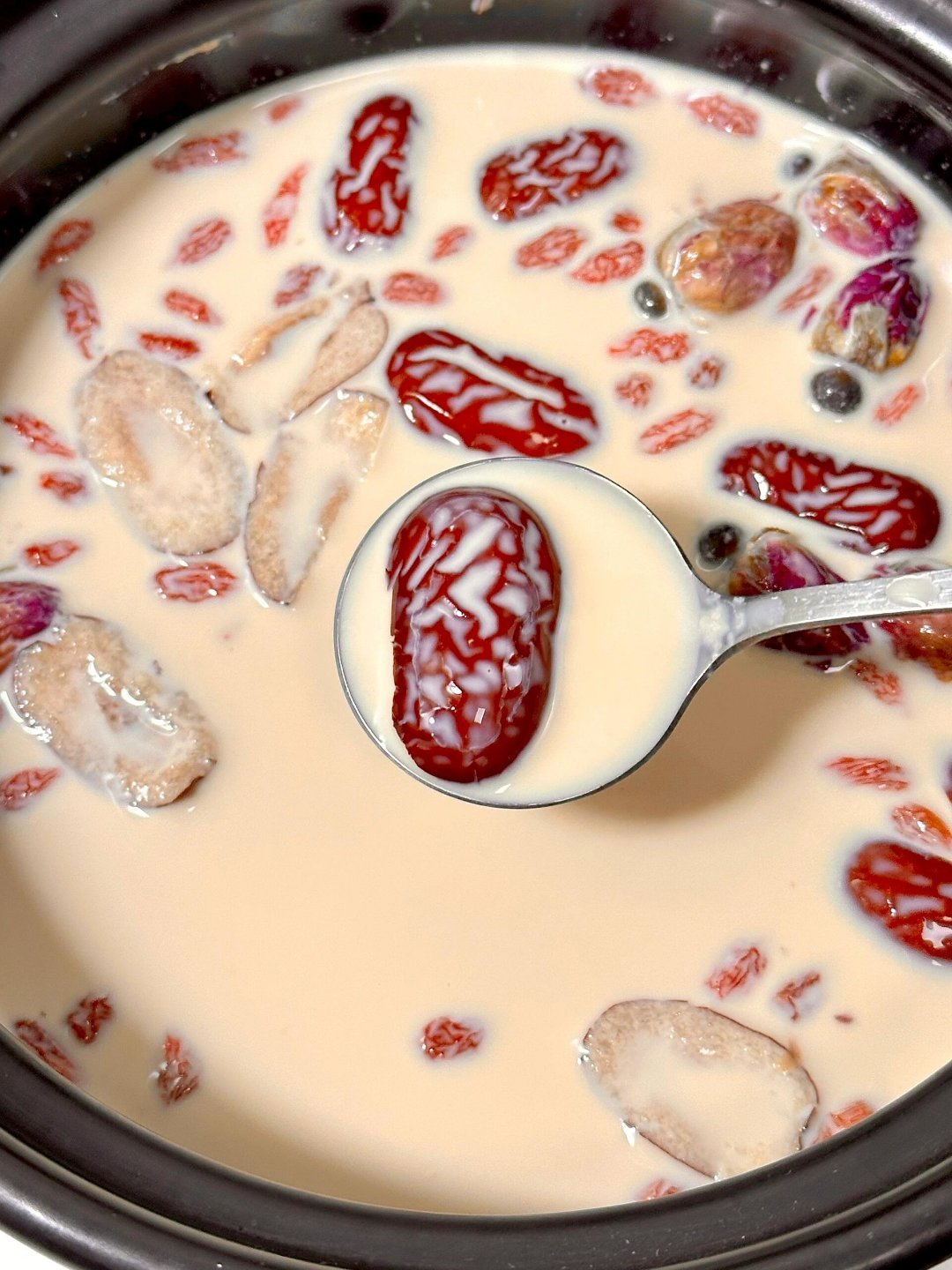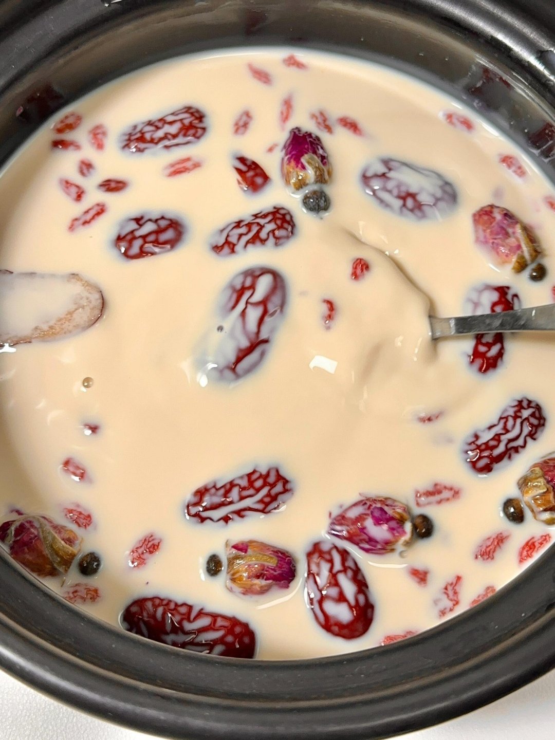 风味人间 | 饮品 | 超级好喝的红枣牛奶茶,来啦。只要你有手就会跟风走。挑了一种新疆的饱满的红枣,然后牛奶有条件的加入枸杞子煮开,喝上去很暖胃。