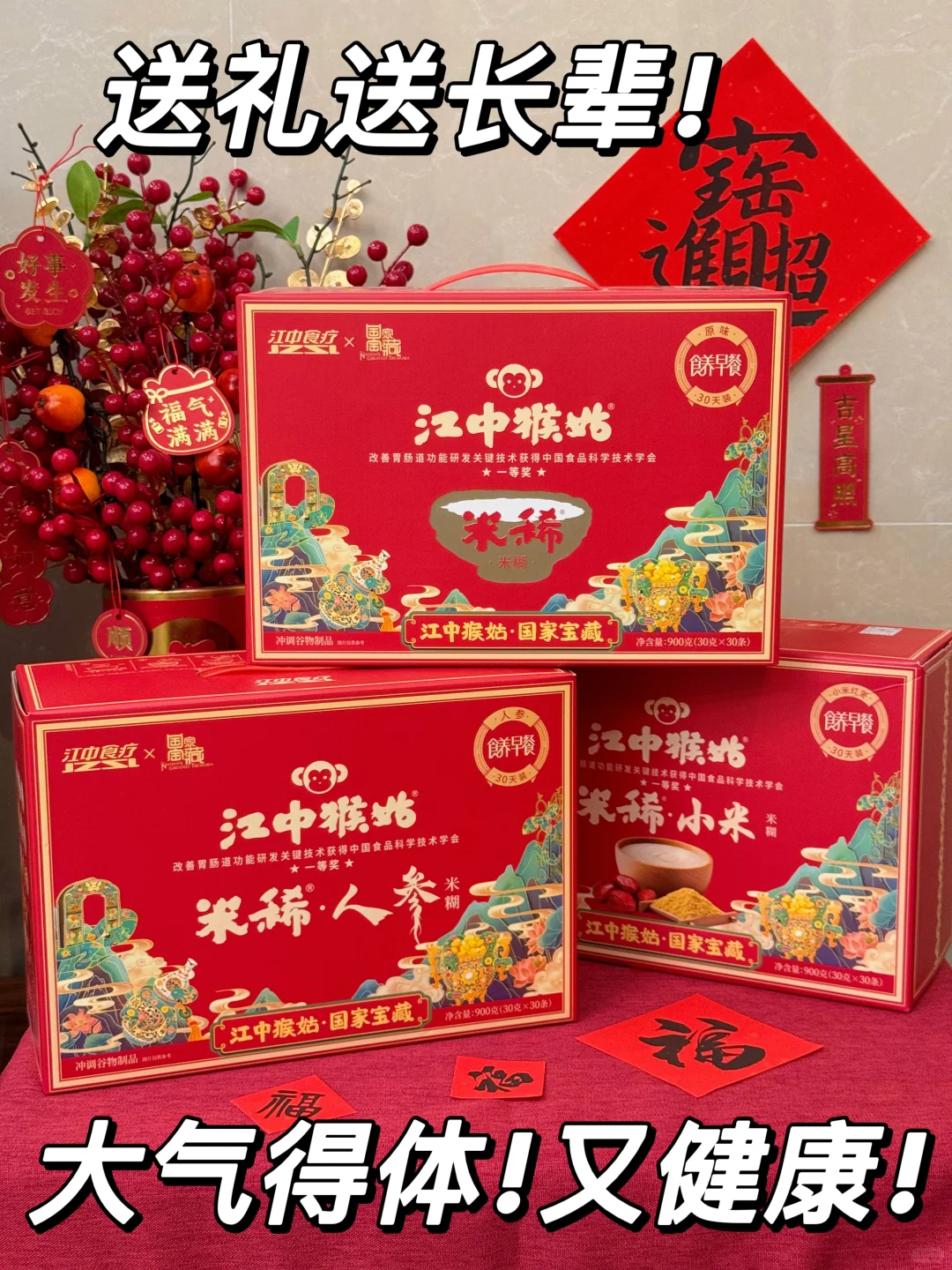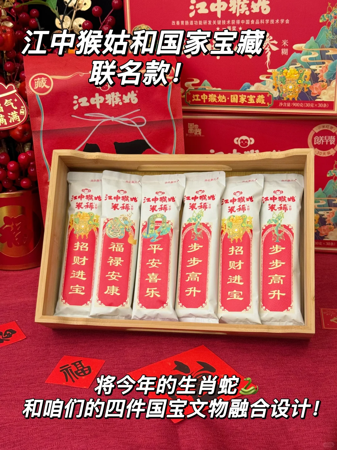 这次我还专门选了江中猴姑和国家宝藏的联名款!包装实在貌美!联名款将今年的生肖蛇🐍和咱们的四件国宝文物融合设计,包含了“福禄双全”“事事如意”“步步高升”“日进斗金”这四种美好寓意~ 这波祝福跟健康一起送出去,长辈们可不得狠狠收下啊!