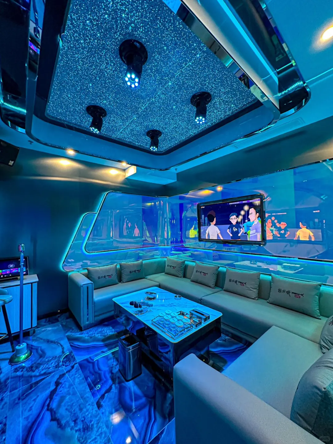 最近在通州发展一个非常漂亮的ktv,一进店我直接被这装修风格拿捏住!灯光秀效果超酷炫,感觉像在梦幻的星河下唱歌,还有那充满欢乐氛围的欢唱区域,布置得超有格调。重点是,他家的大包房里居然有台球房!唱累了还能去打两杆,这对我们这种既爱唱歌又爱台球的人来说,简直是梦中情 KTV 啊!