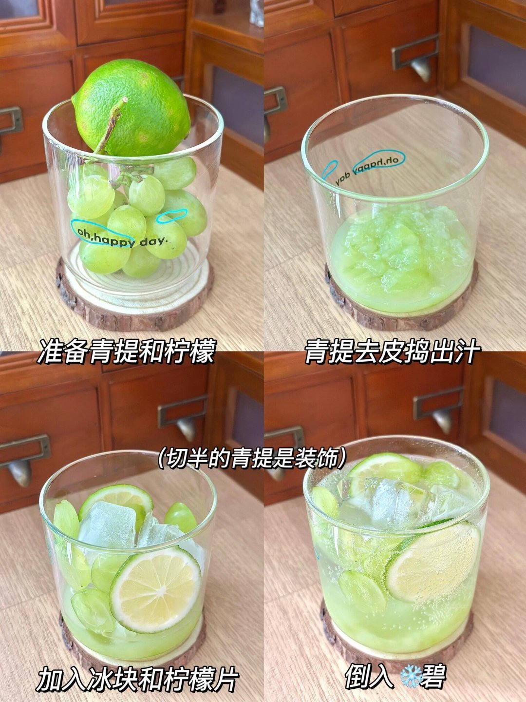 青提柠檬气泡水是一款清爽可口的饮品,以下是其制作方法: