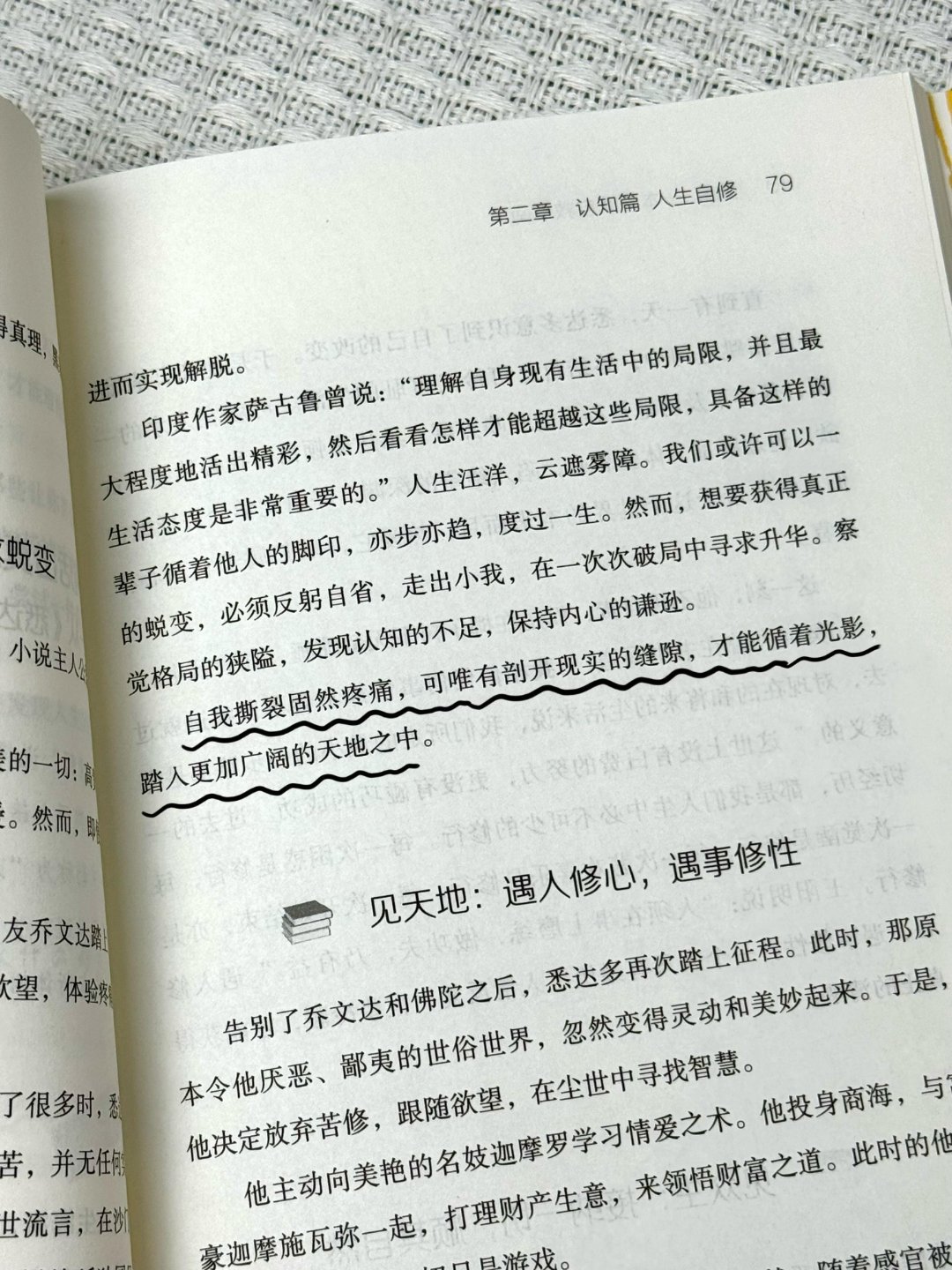 每一个章节都像是一次心灵的对话,让我不禁审视自己那些难以释怀的过往片段,逐渐明白执着于过去的失误或伤害,只会错失当下的美好与未来的可能。它教会我用积极的心态去接纳生活的变化,把曾经的不如意当作成长的垫脚石,勇敢地翻过旧篇章,去书写新的故事。