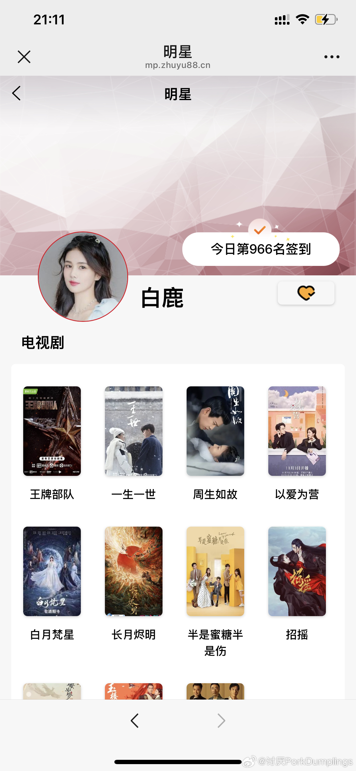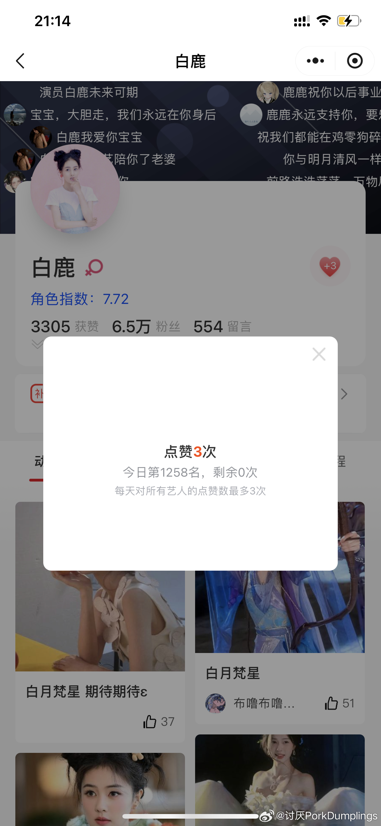 白鹿 [给你小心心] 白鹿白烁 V榜打卡第【3】天快来每天一起打卡吧~