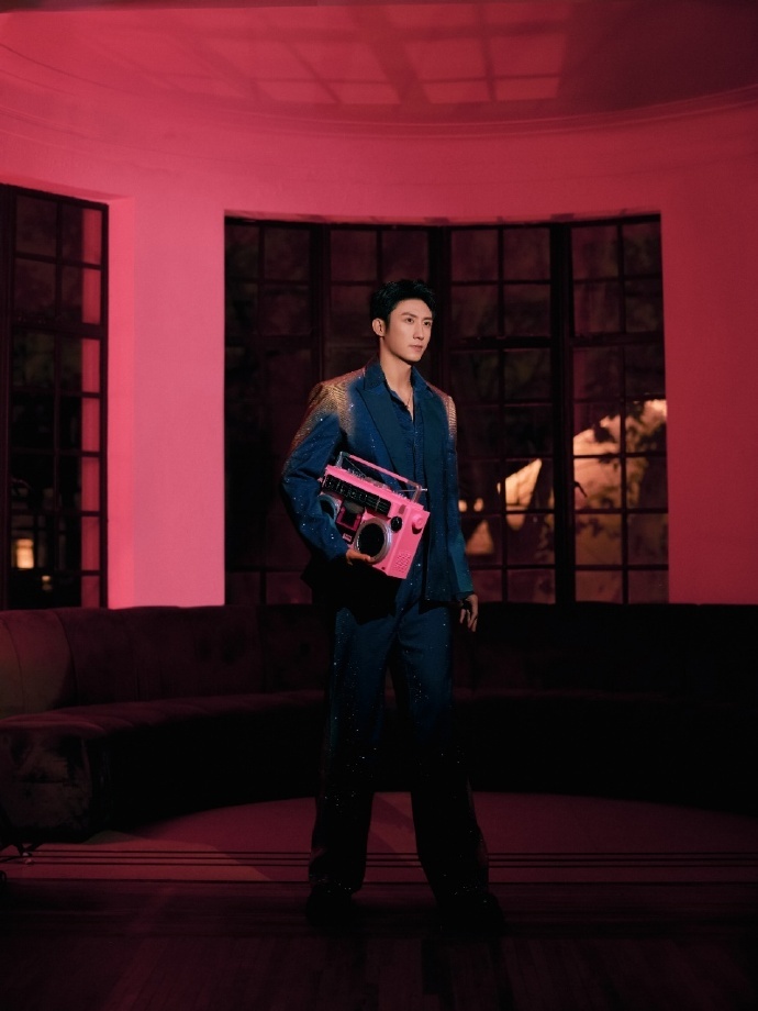 黄景瑜去年林陆骁今年江成屹 江成屹风格的造型搭配上这种霓虹甜心舞台的元素,黄景