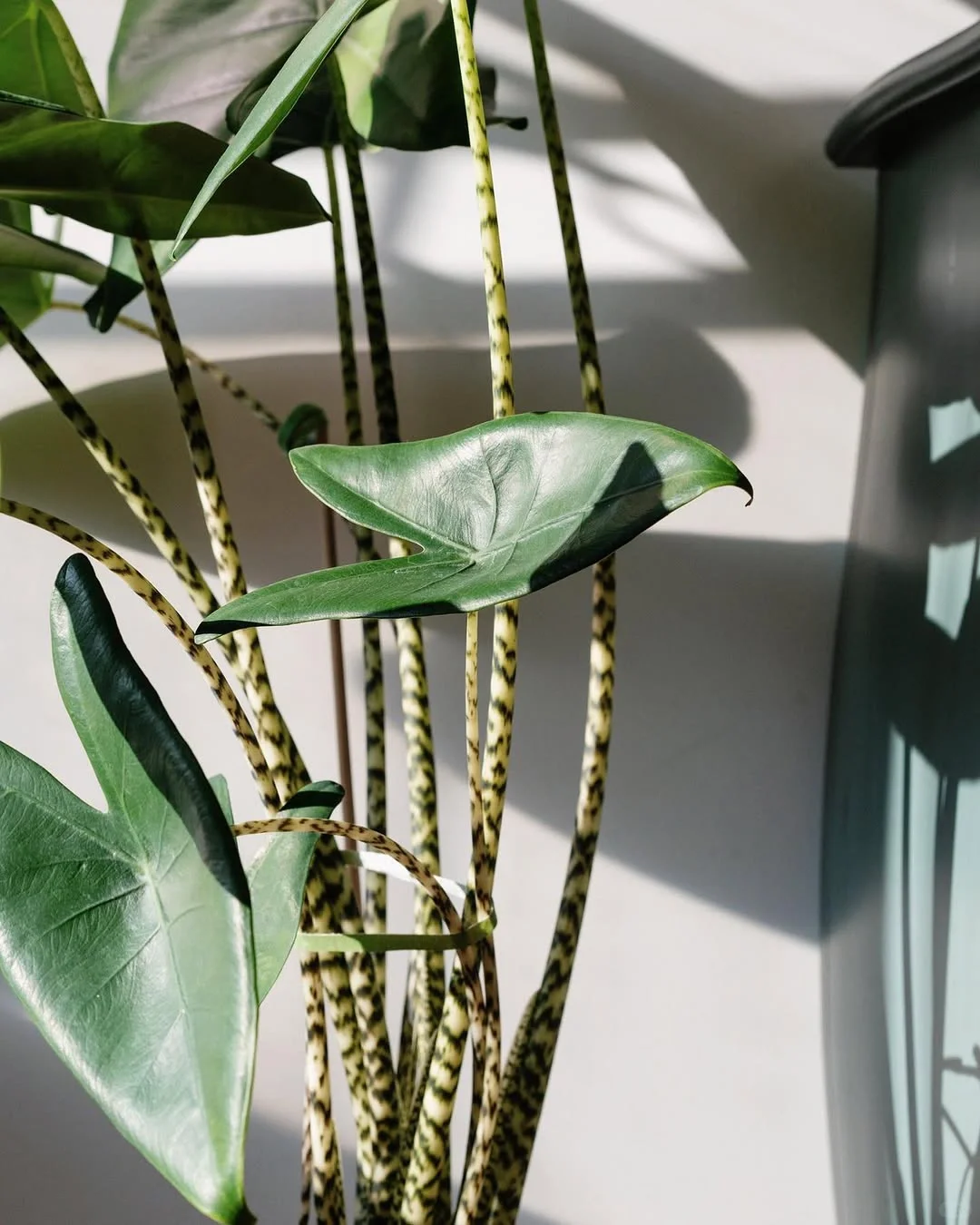 在生长旺盛期,需保持土壤湿润,同时向植株周围喷水,增加空气湿度。斑马海芋虽有一定耐寒性,但冬季室温最好不低于10℃。