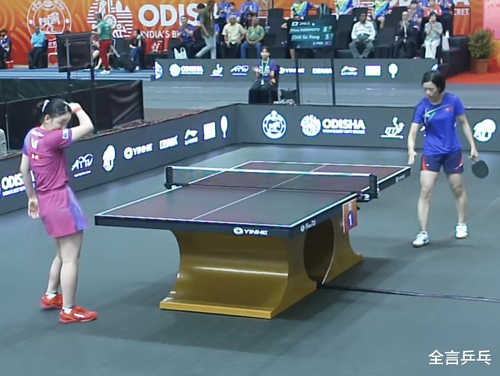 比赛开始后,双方在首局就打得非常激烈,张本美和虽然在相持阶段有优势,但在发接发环节的表现却远不如车秀英,双方鏖战至7-7后逐渐拉开差距,张本美和没有把握住自己的发球轮,同时连续出现吃发球的情况,结果连丢4分以7-11先输一局。