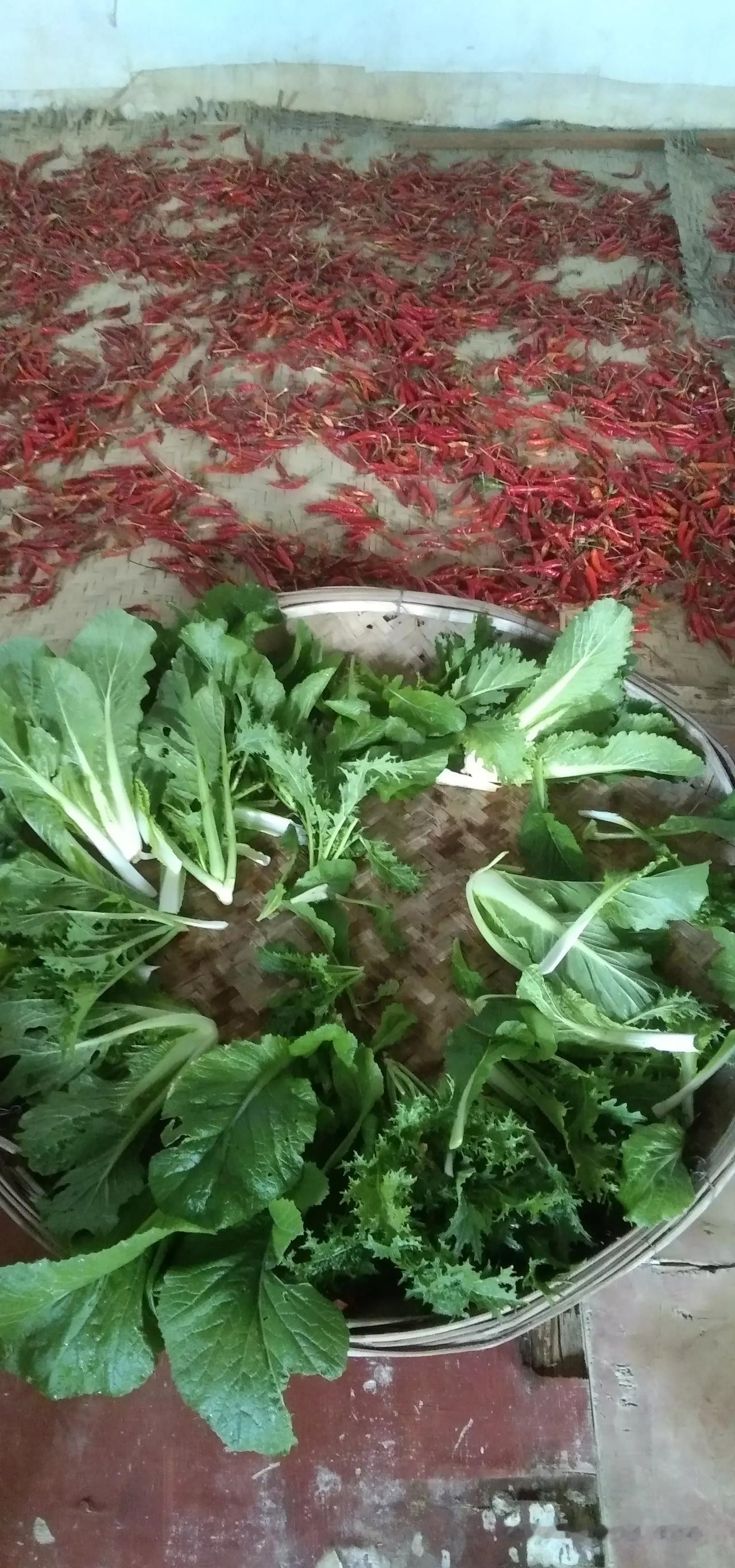 我发酵的青菜还没有吃完,年后承包户要整地了,趁现在我把青菜找回来,先凉干到发皱时,切碎,再放上辣子、花椒、姜丝、盐、酒等,放匀后,尝一下青菜微咸时,装带耳的的陶罐内,发酵20多天后,一边发酵一边吃了。