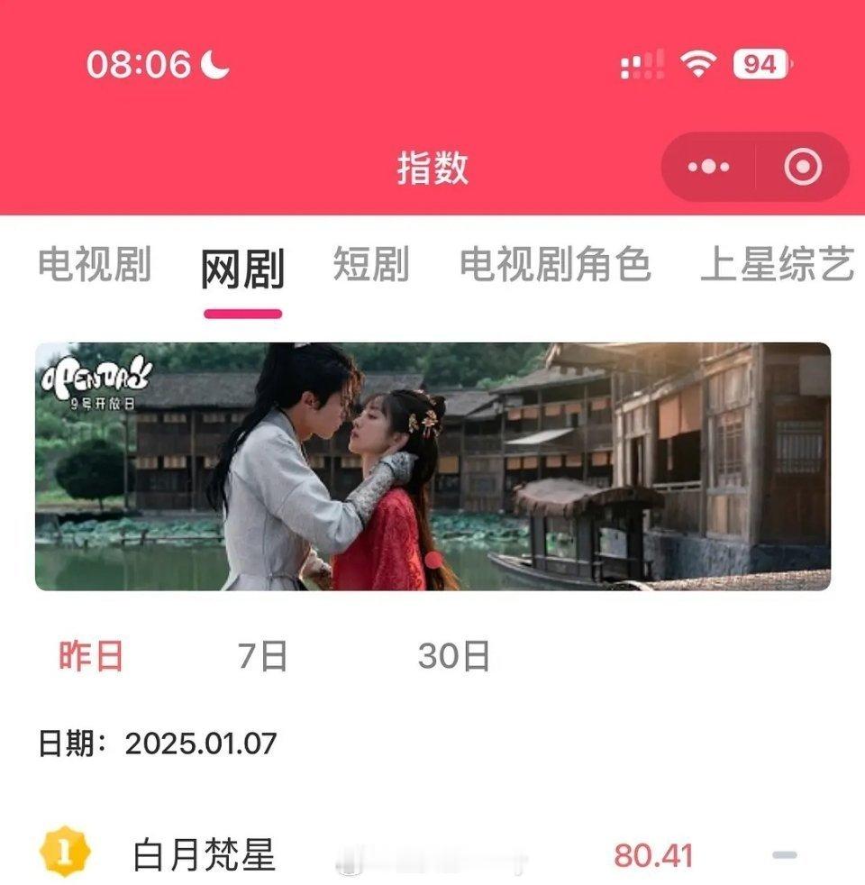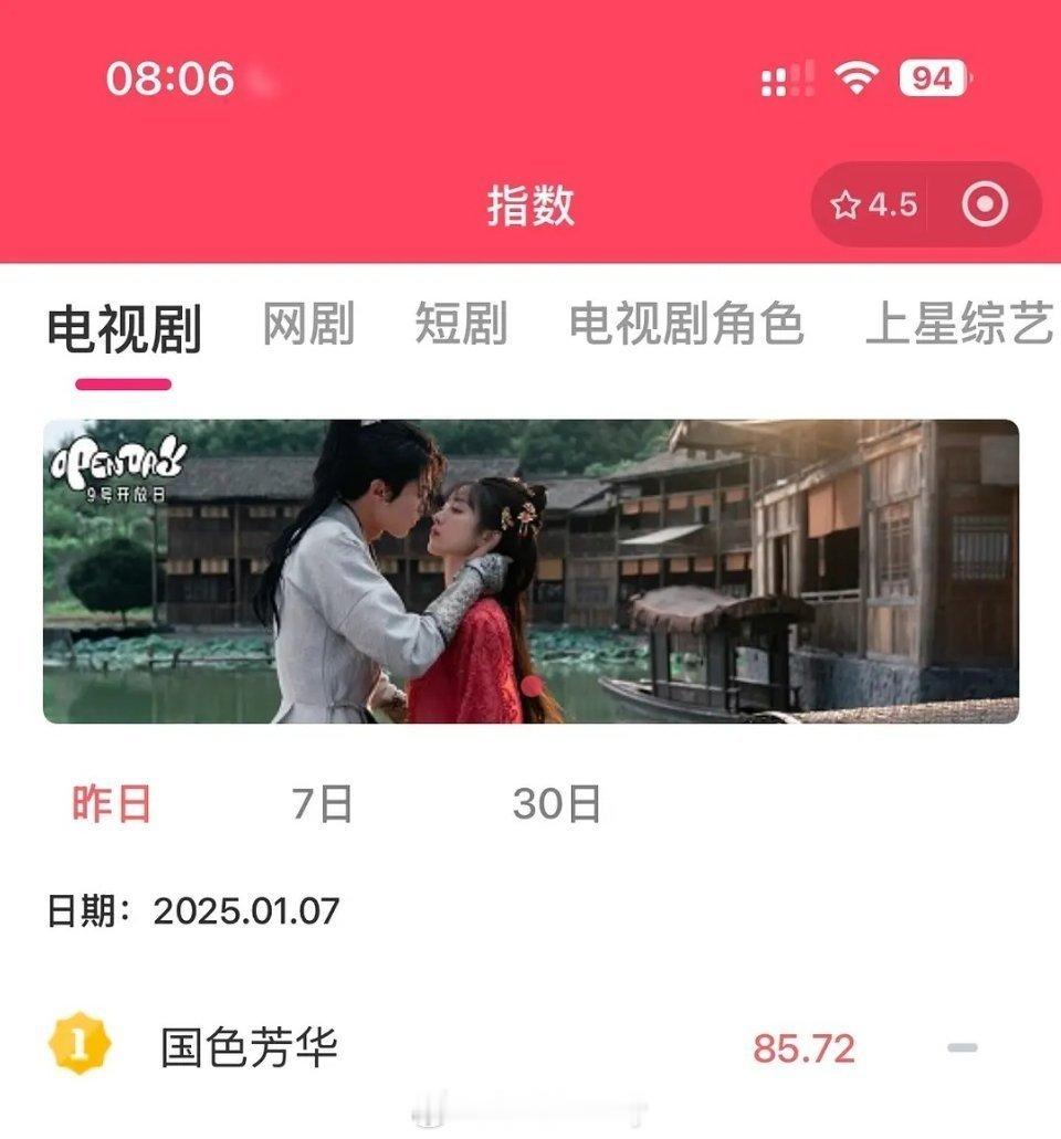 杨紫白鹿新剧首播数据 《国色芳华》《白月梵星》两部剧热度还是可以的,何惟安角色指数第一,《白月梵星》网剧指数第一,都很厉害啊,就看未来几天如何了